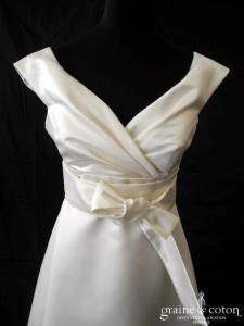 Création taille basse en soie sauvage et tulle de soie drapé