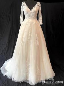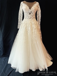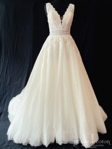 Dépôt d’un modèle princesse Demetrios en dentelle perlée et tulle, beau volume et paillettes au rendez-vous ! Taille 38, référece 6362. Voile idéalement assorti référence 6361.