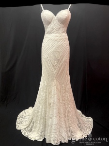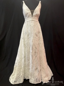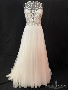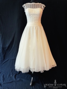 Dépôt de deux nouvelles robes : – la création courte « Tiana » de Catherine Deane en tulle de soie et guipure de dentelle perlée : délicate et lumineuse. Taille 36-38, référence …