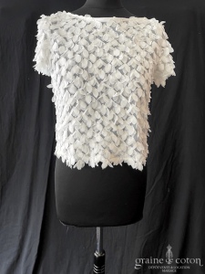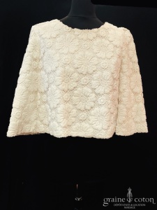 Dépôt du modèle « Alma » ou « First » de Rembo Styling, en crêpe et mousseline ivoire, agrémenté de guipure : seyante et lumineuse. Bohème champêtre. Taille 40, référence 6356. Réassort de pulls …