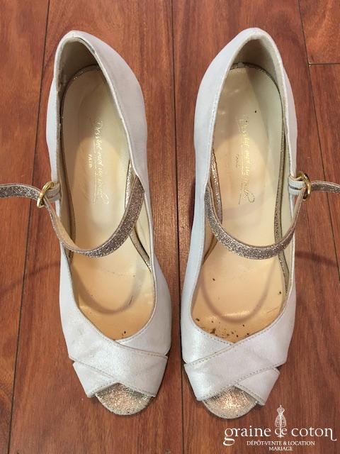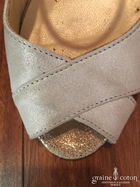 Sandales ouvertes (chaussures) et lanière chevilles en nubuck irisé. Talon de 9 cm. Jolies et confortables !