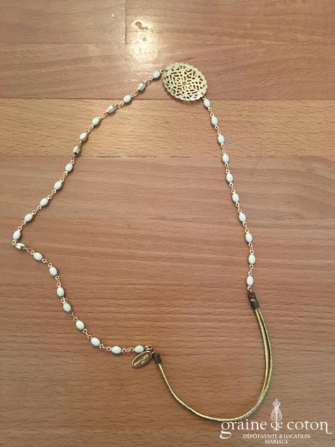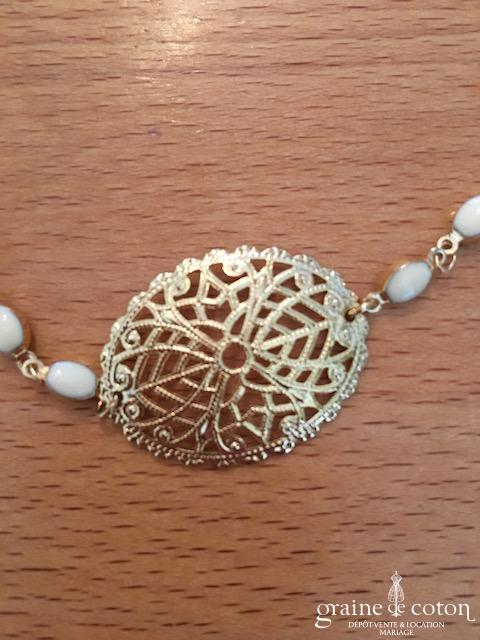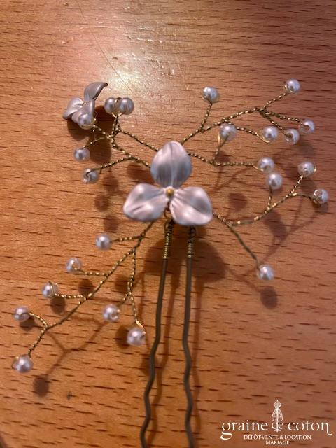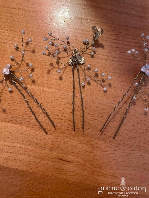 Cache chignon en fil doré, plumes et strass