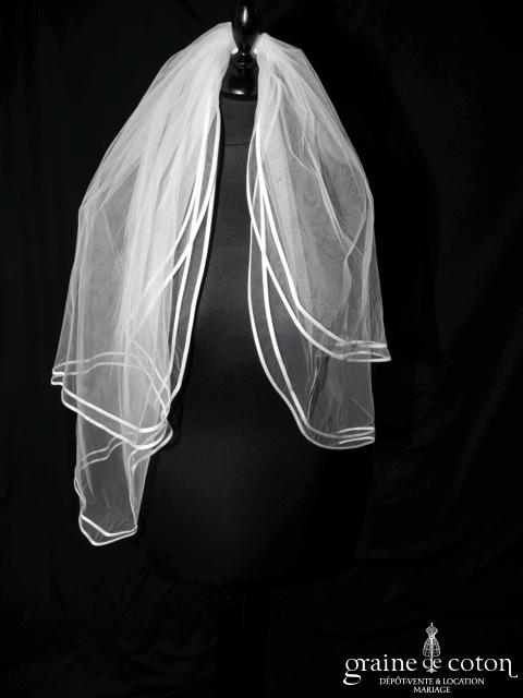Voile court en tulle blanc bordé d’un double biais de satin