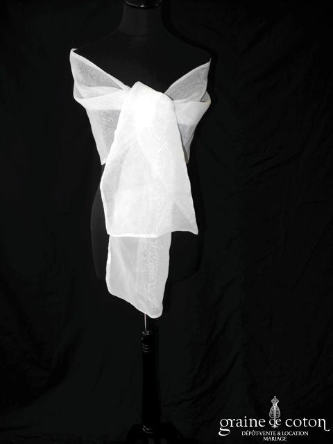 Voile mi long en tulle blanc bordé d’un double biais de satin