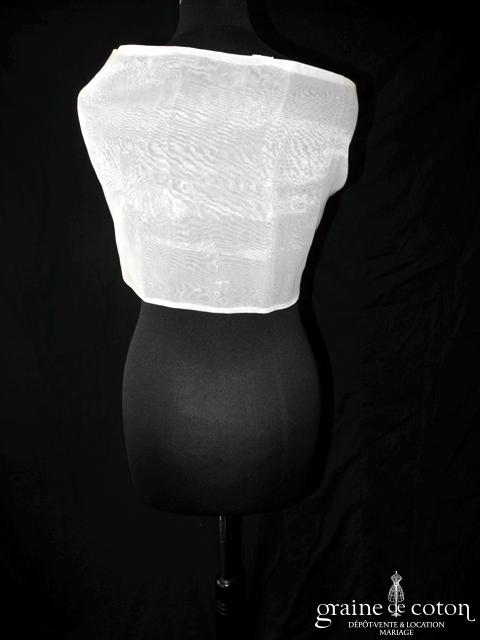 Voile court en tulle ivoire bordé d’un double biais de satin