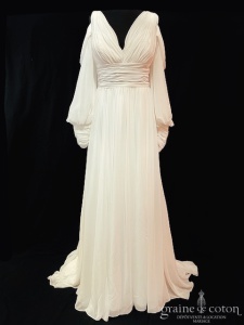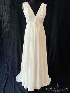 Dépôt du modèle « Camélia » d’Elsa Gary, bohème champêtre en mousseline et dentelles ivoire : taille 38, référence 6364.