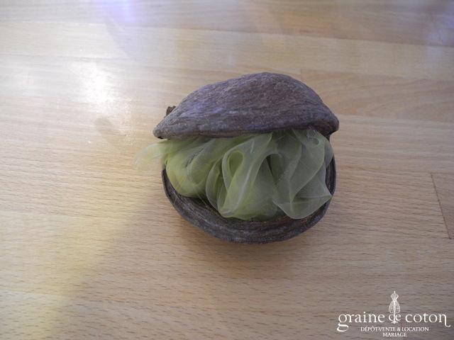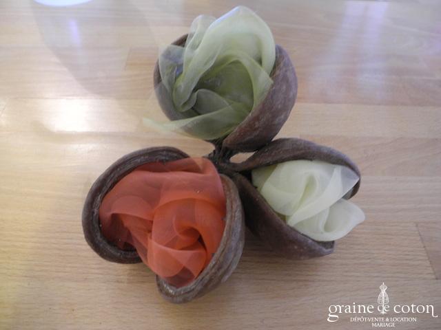 Écorce triple pour une déco bio ! Très originale, cette véritable écorce façon bogue triple a été aménagée avec des tissus de couleur. A vous d’imaginer son intégration dans votre …