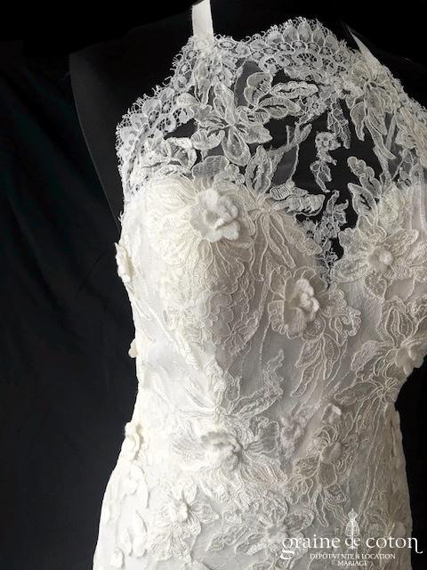 Boléro en fine dentelle de Chantilly ivoire à manches longues et encolure bateau