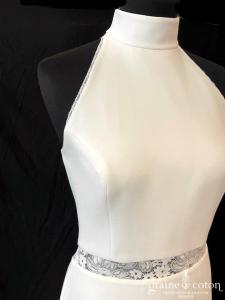Boléro en guipure brodée ivoire sans manches, encolure bateau. Original et élégant.