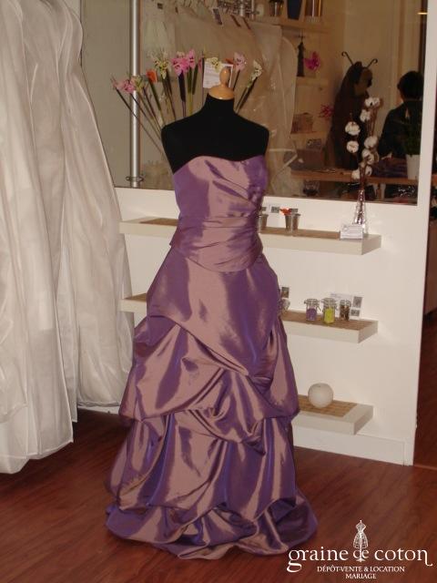 Robe deux pièces violette : bustier avec drapé à la taille, jupe effet « nuage ». Idéale en robe de cortège, de témoin ou demoiselle d’honneur, d’une couleur bien tranchée pour ne …