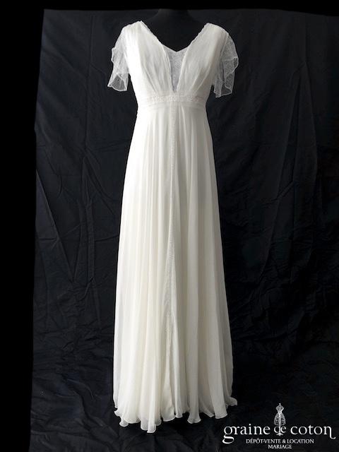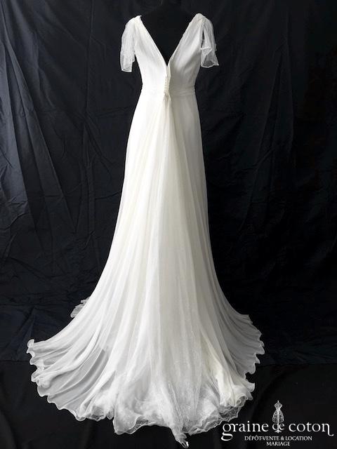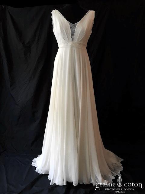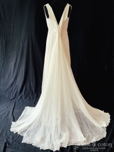 Dépôt de 4 nouvelles robes : – le modèle « Romance » de Marylise, en tulle fluide et dentelle, bohème chic. Taille 38, référence 5558. – la robe « Tavia » de Alma Novia …