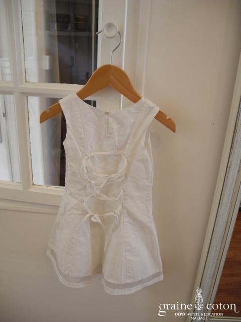 Manteau petite fille vintage en coton et dentelle ivoire