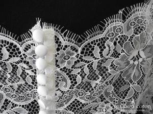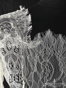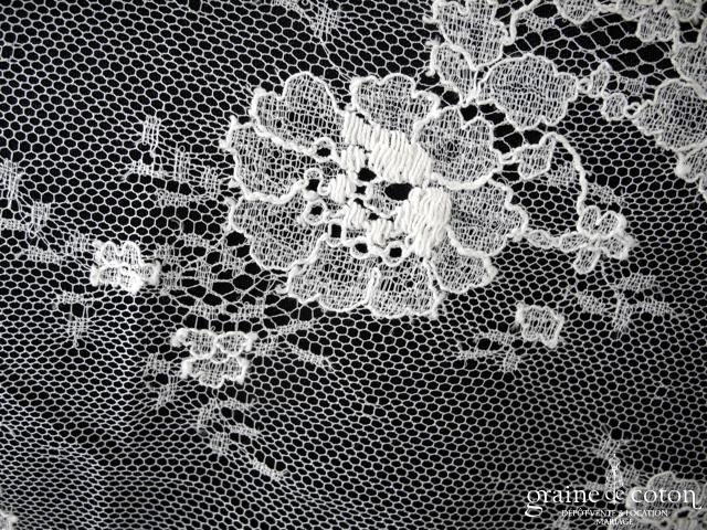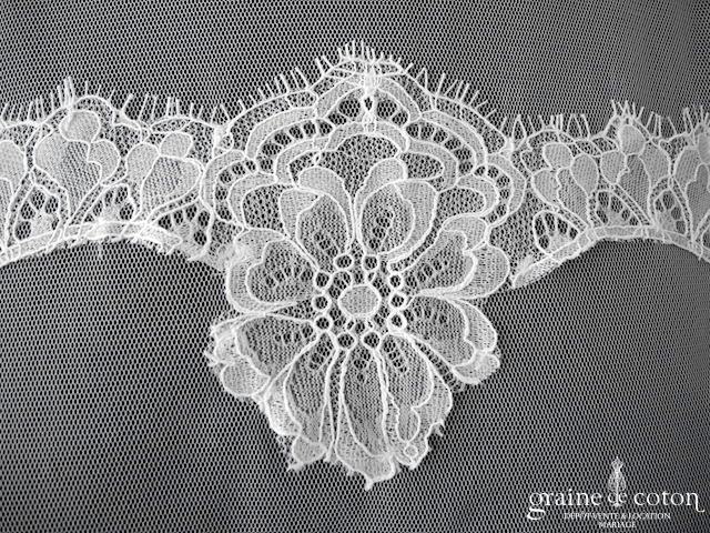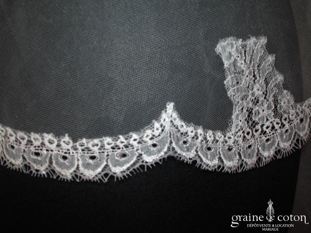 Voile court en tulle souple blanc et fine dentelle de calais. Non monté, à fixer à des pics à chignon.
