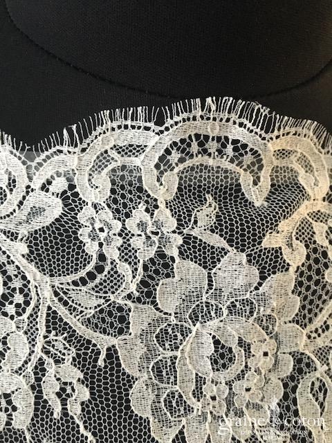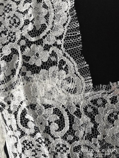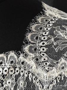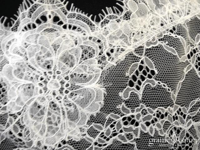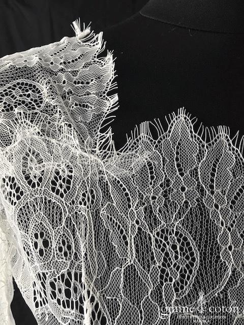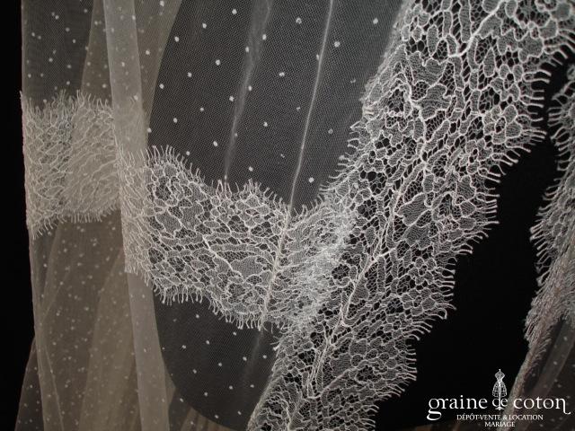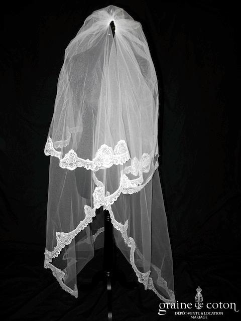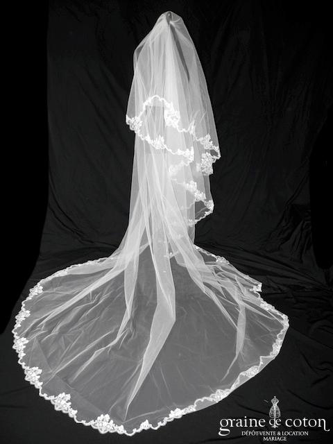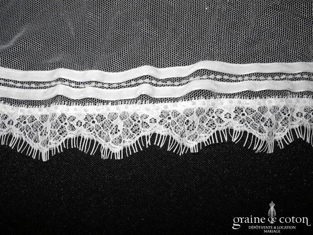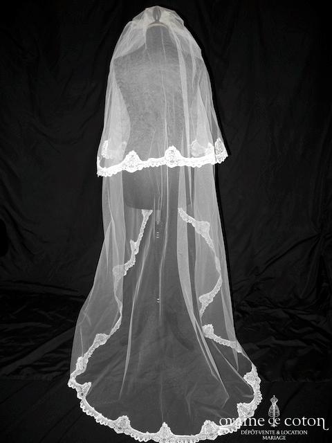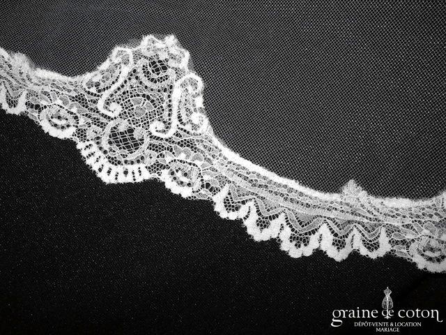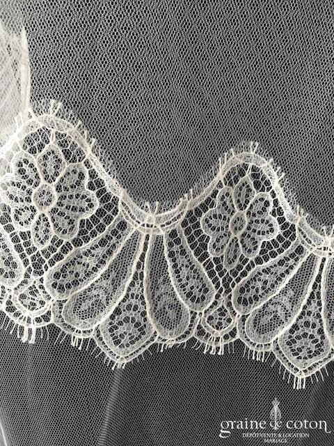 Voile long de 2 mètres en tulle ivoire clair bordé de fine dentelle de Chantilly