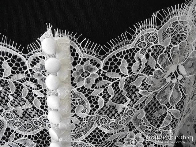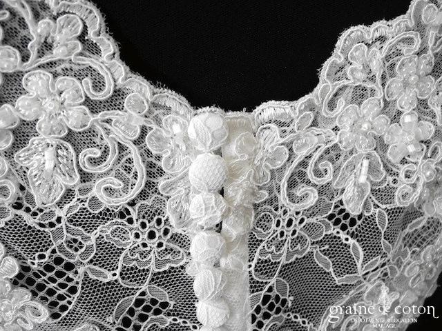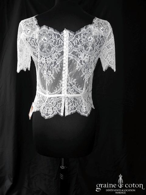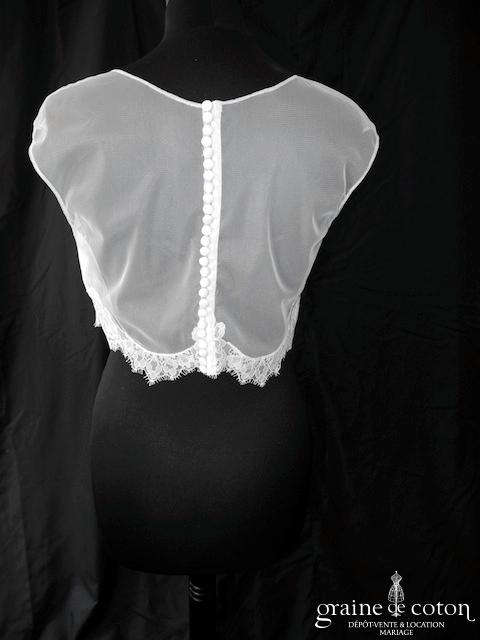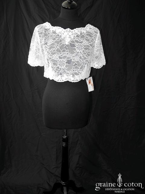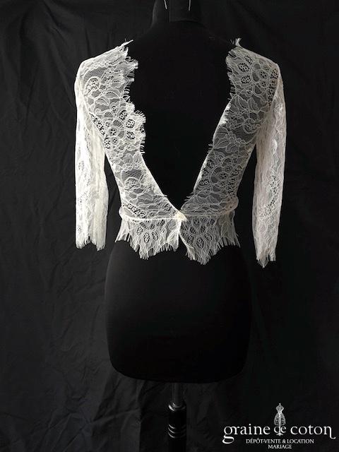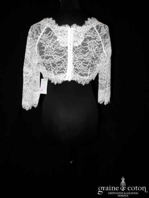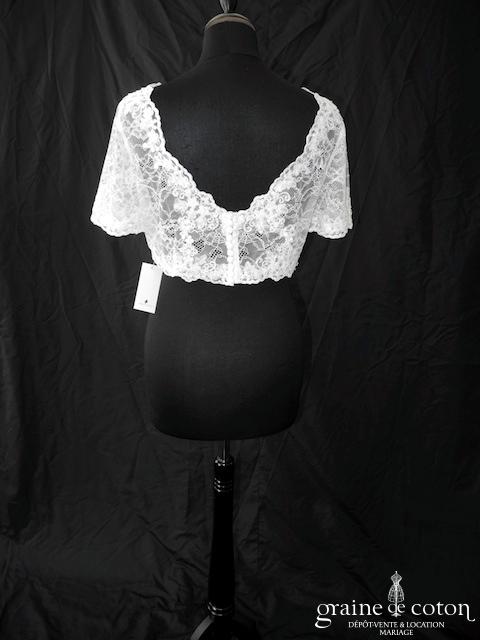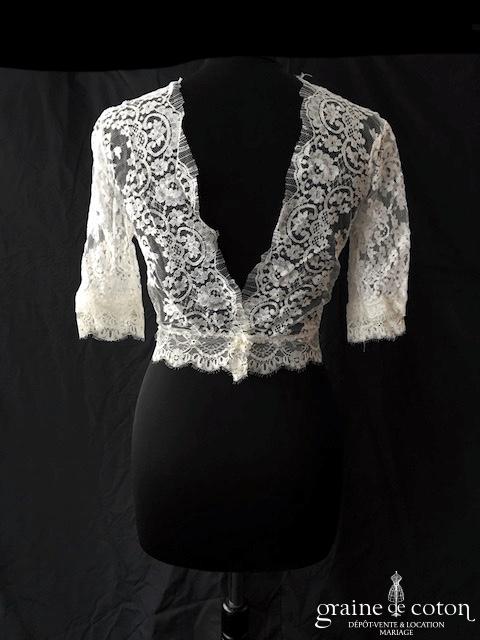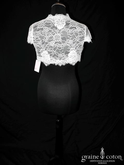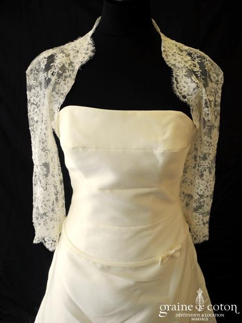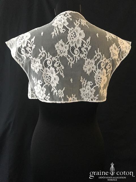Boléro à fermer dans le dos en fine dentelle ivoire et petites manches