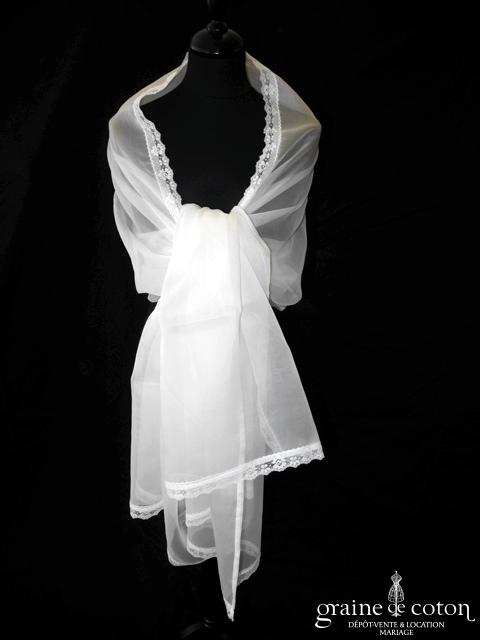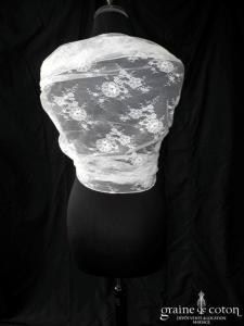 Voile long de 2,50 mètres en tulle souple ivoire bordé de fine dentelle