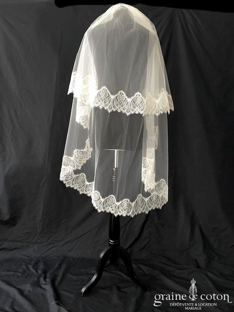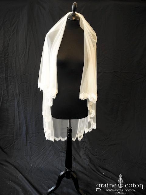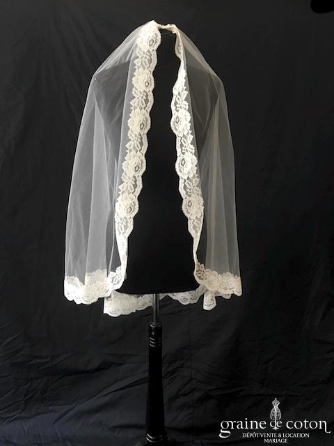 Voile mi long en tulle ivoire clair bordé de fine dentelle