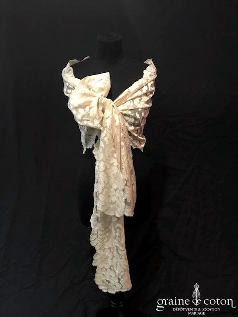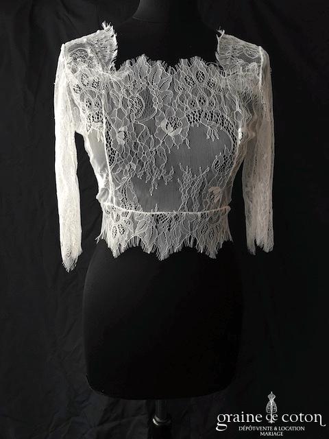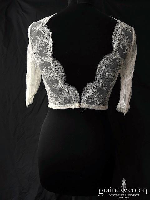 Boléro en fine dentelle de Chantilly ivoire à manches longues et encolure bateau
