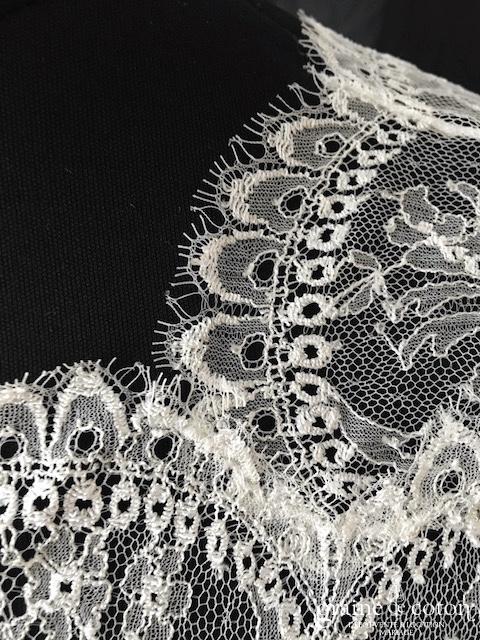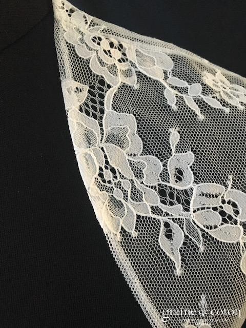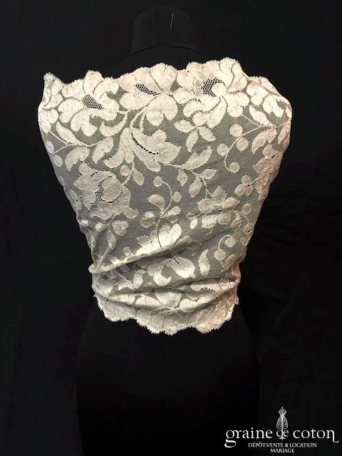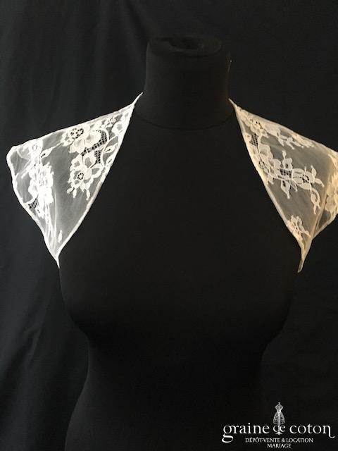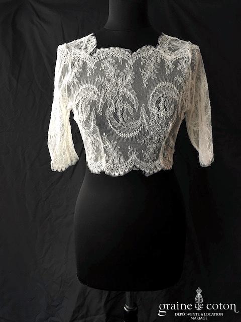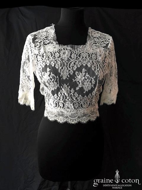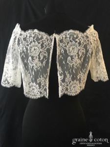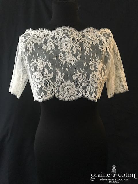 Boléro en fine dentelle de Chantilly ivoire à manches courtes et encolure bateau