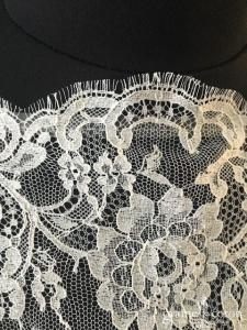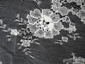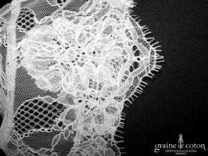 Voile court en tulle souple blanc et fine dentelle de calais