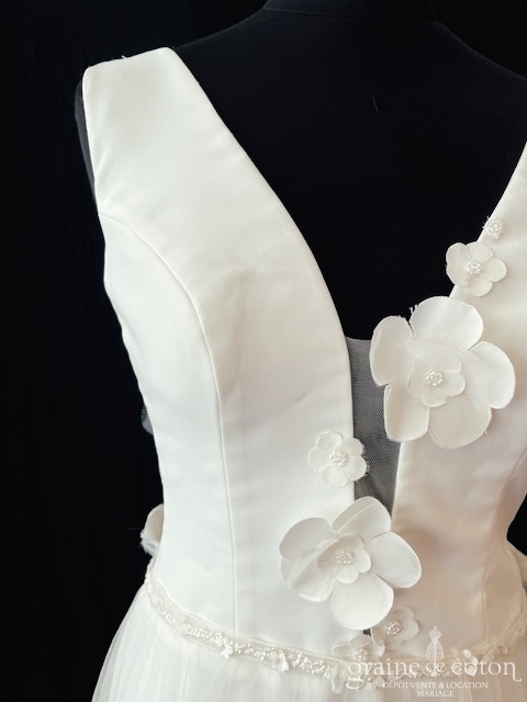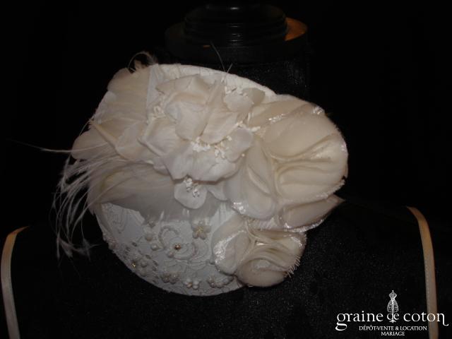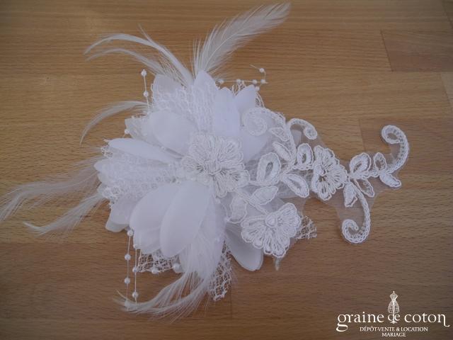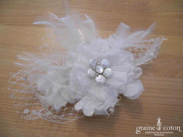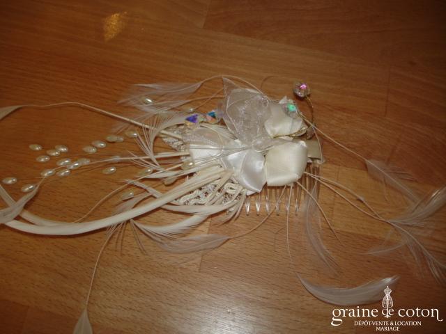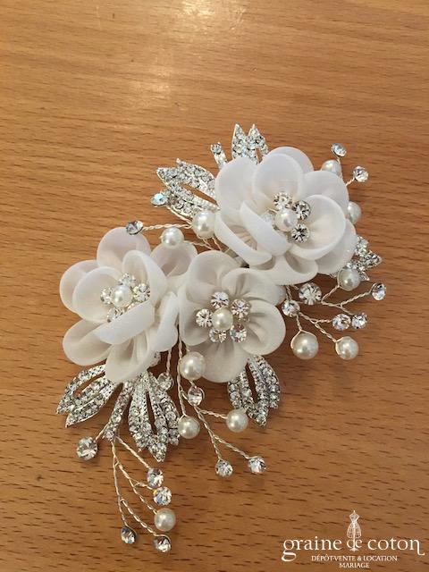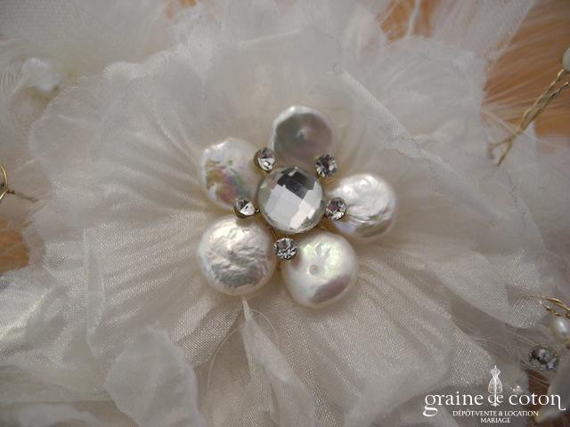 Fleur en organza de soie ivoire à coudre ou à monter sur peigne. 3 modèles au choix.