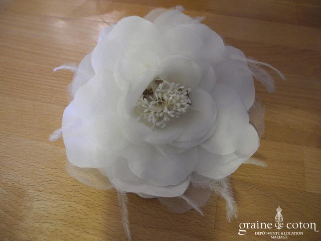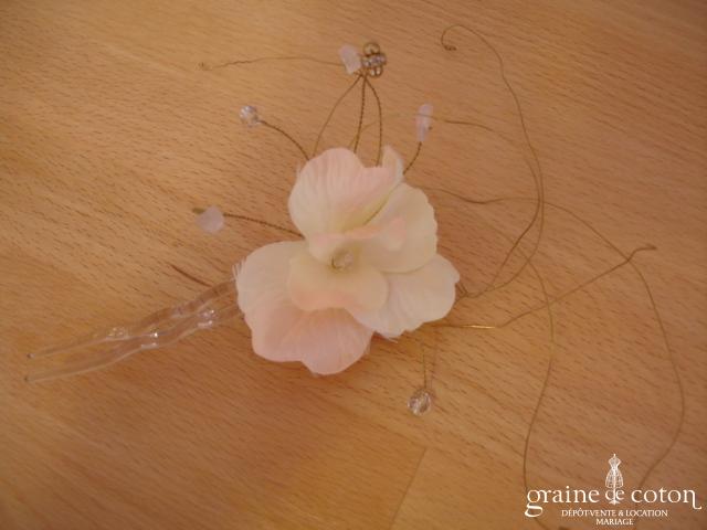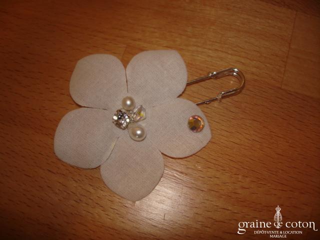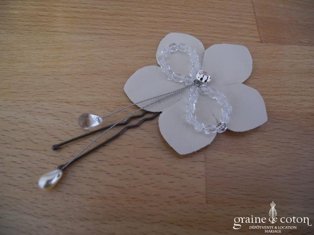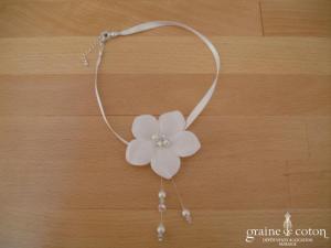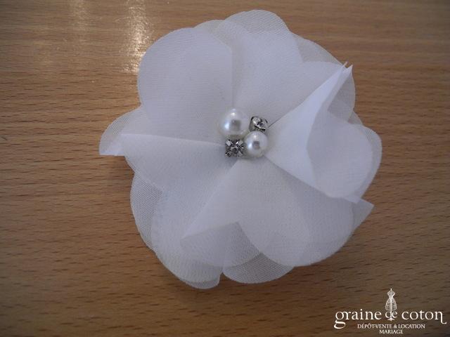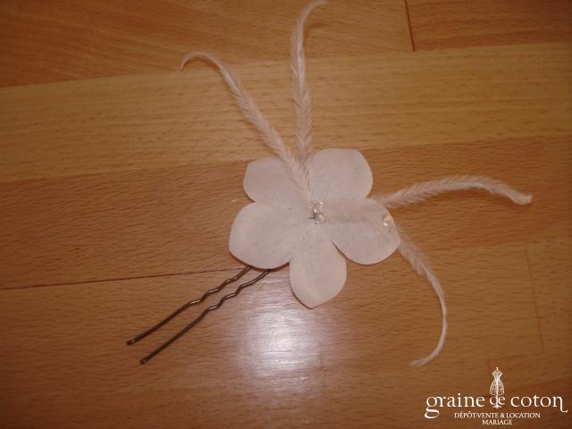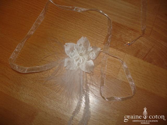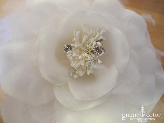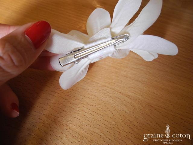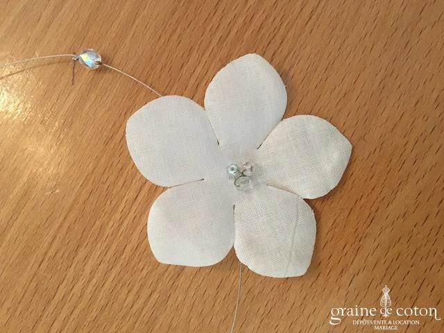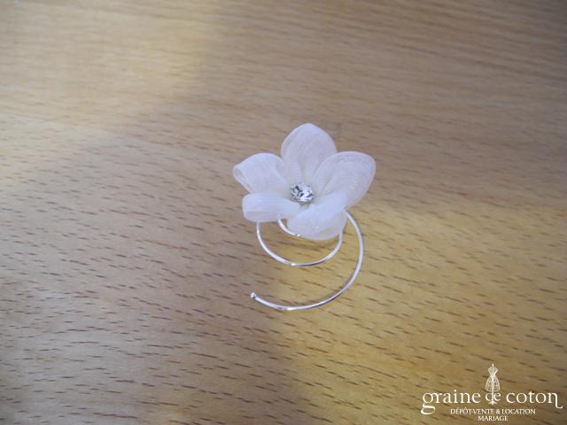 Fleur en organza de soie ivoire à coudre ou à monter sur peigne