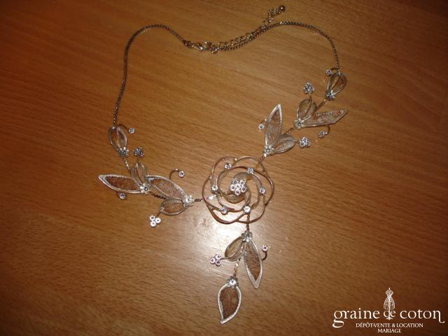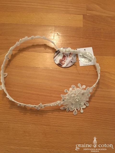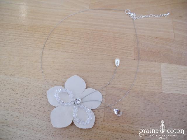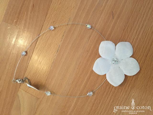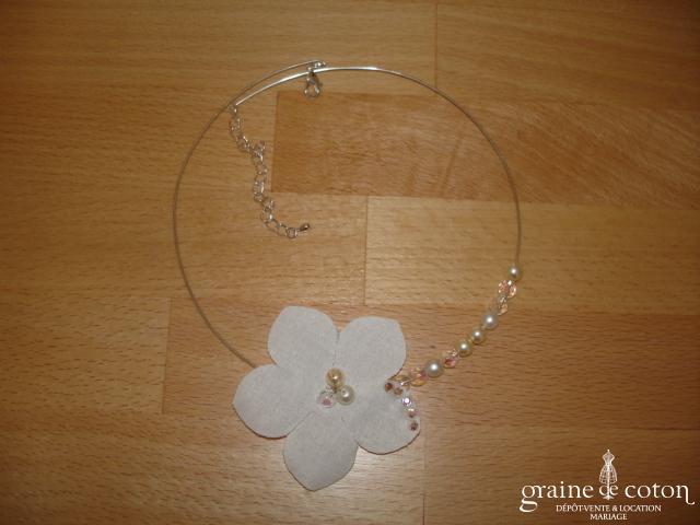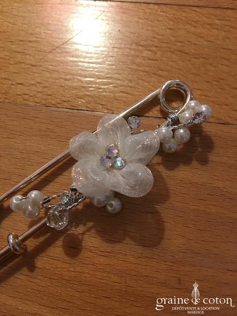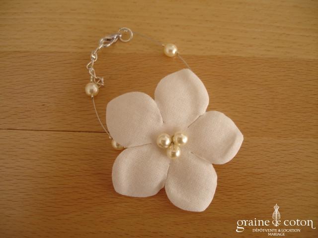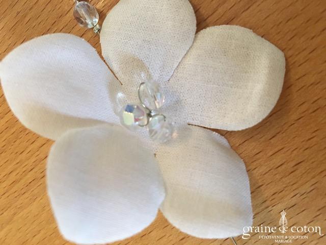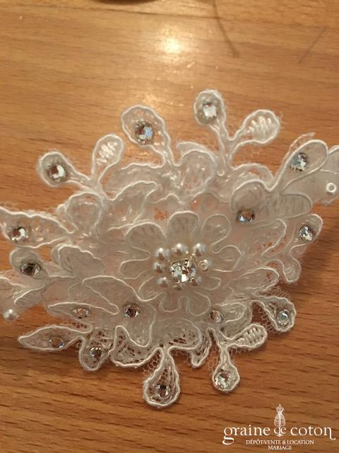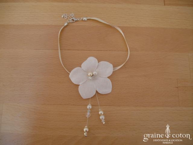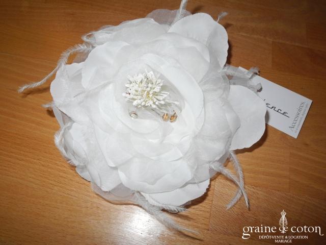 Fleur en organza de soie ivoire à coudre ou à monter sur peigne
