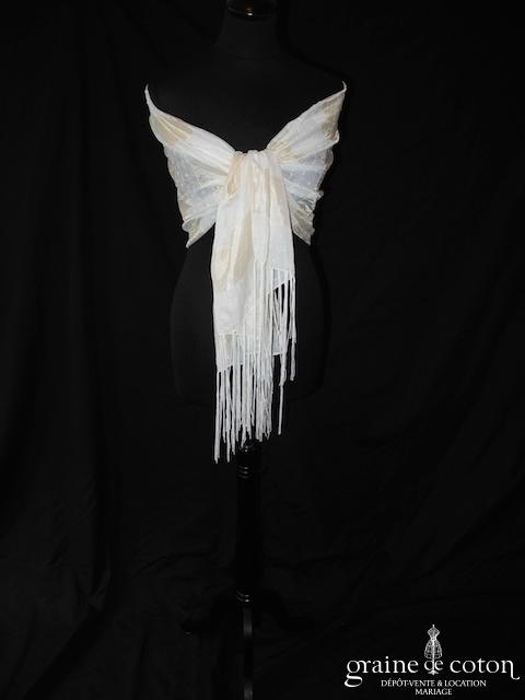 Étole en voile ivoire clair et foncé. Dimensions : 60 * 180 cm.