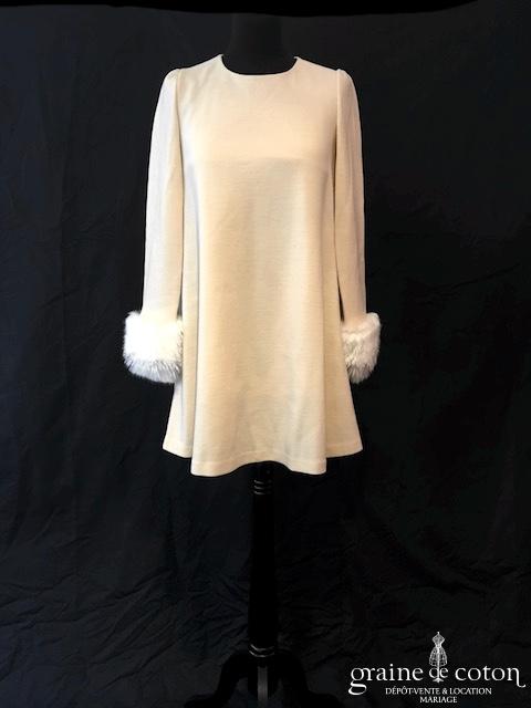Gants vintage en coton épais crème foncé, petit bouton au poignet, coutures noires. Petite main.
