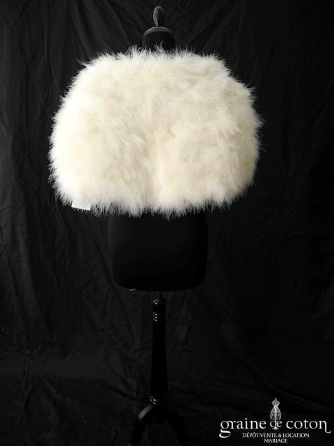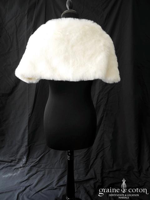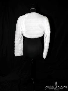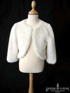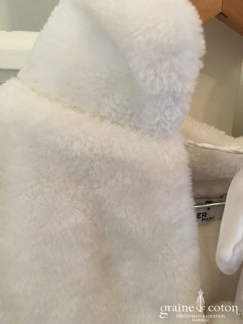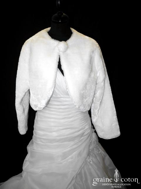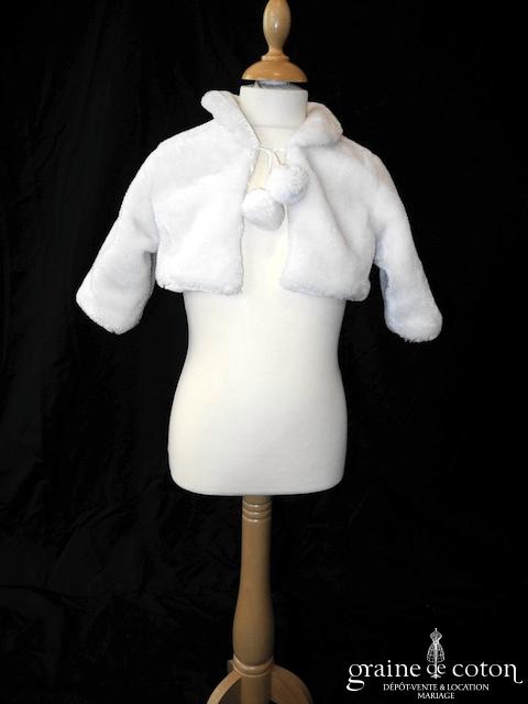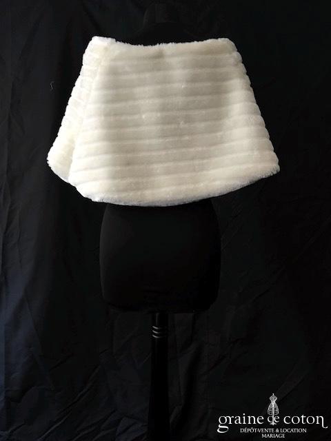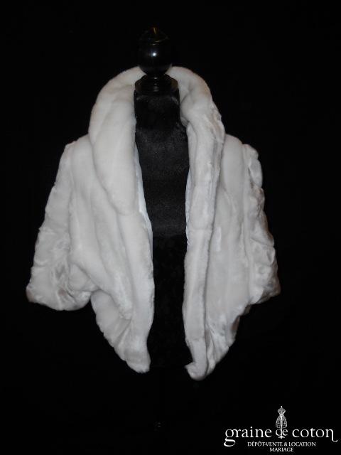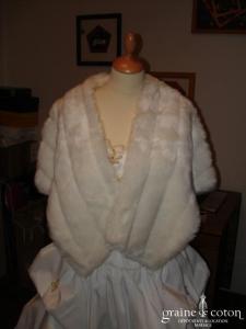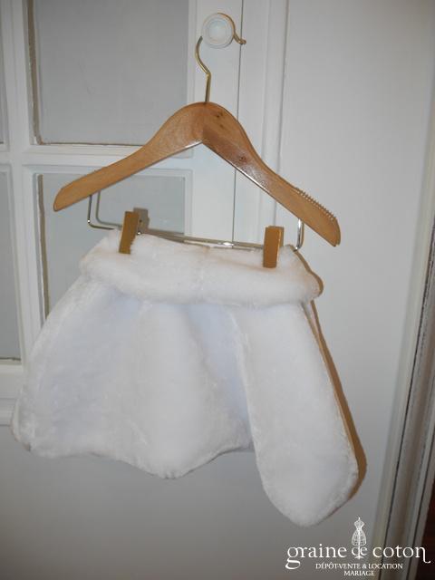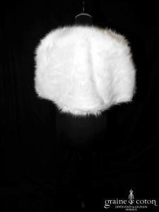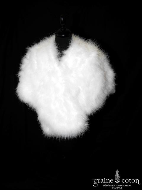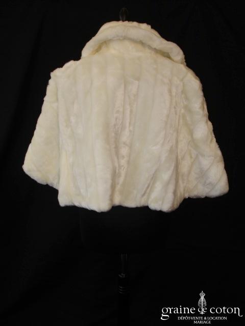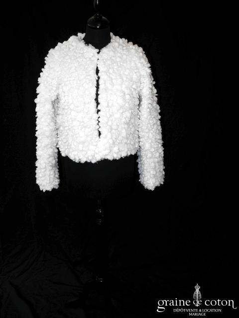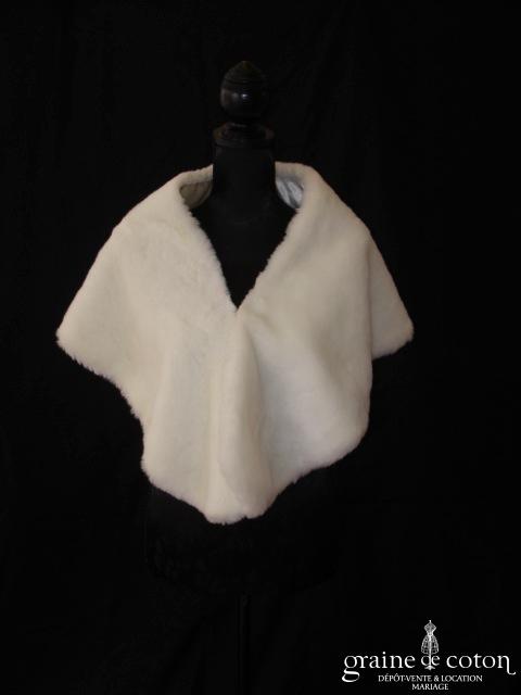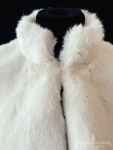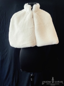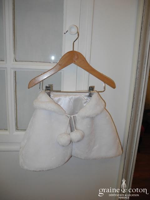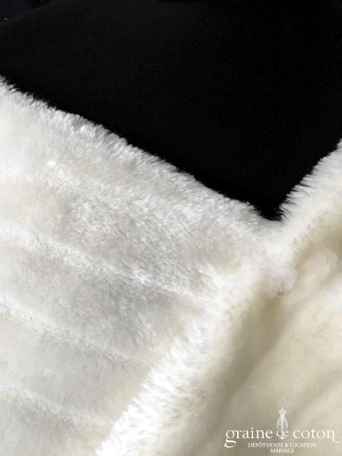Boléro en fausse fourrure ivoire clair avec fermeture rubans de satin et pompons.