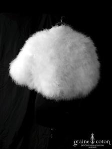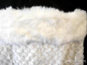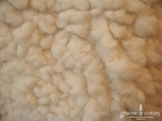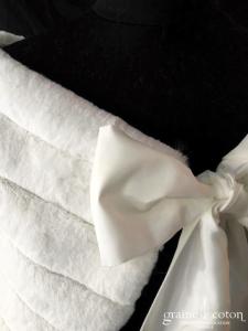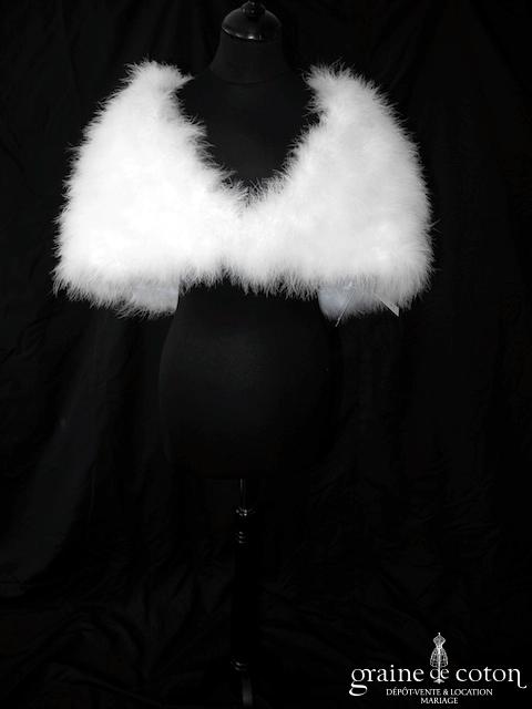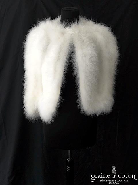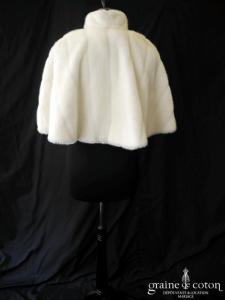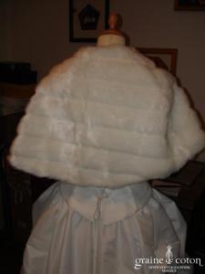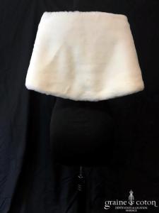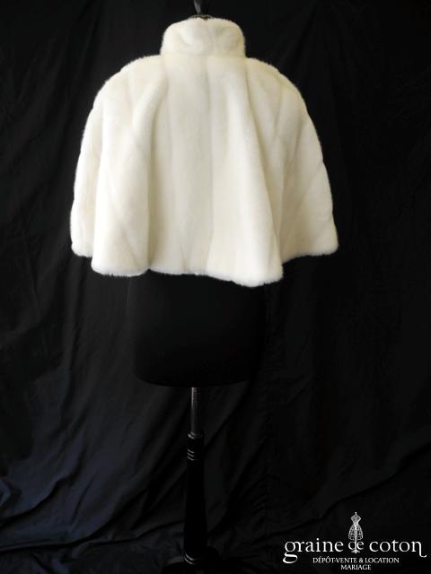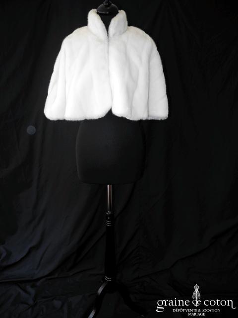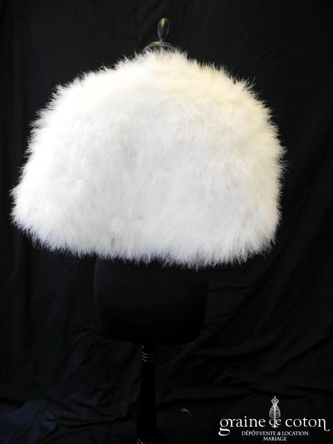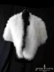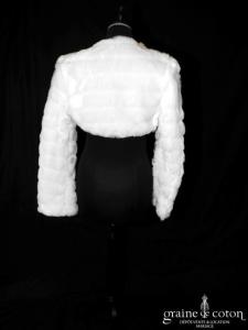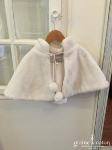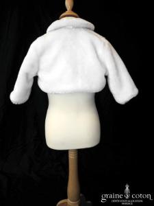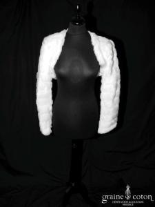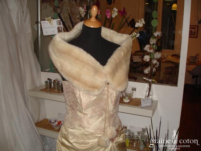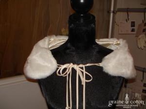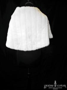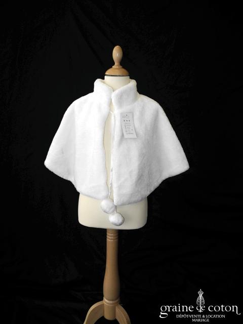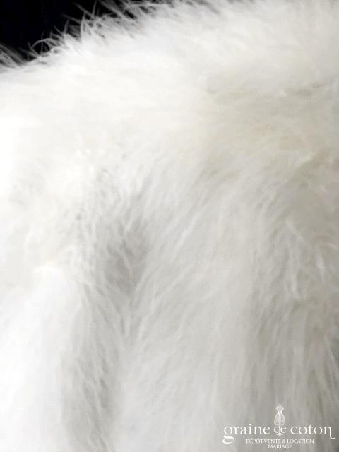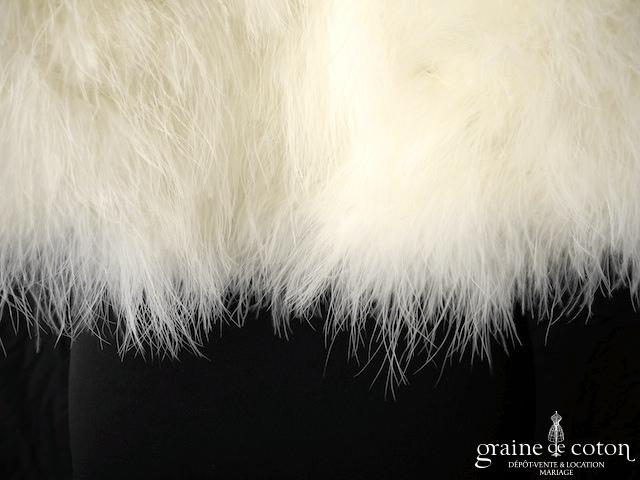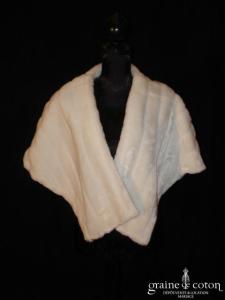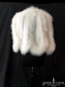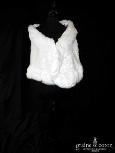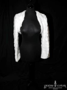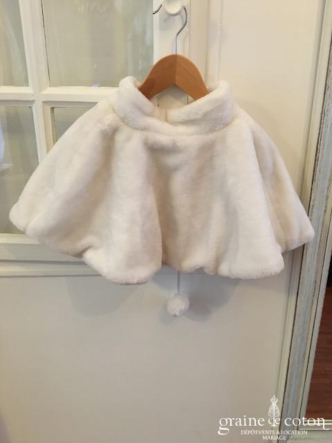 Boléro en fausse fourrure ivoire clair avec fermeture rubans de satin et pompons.