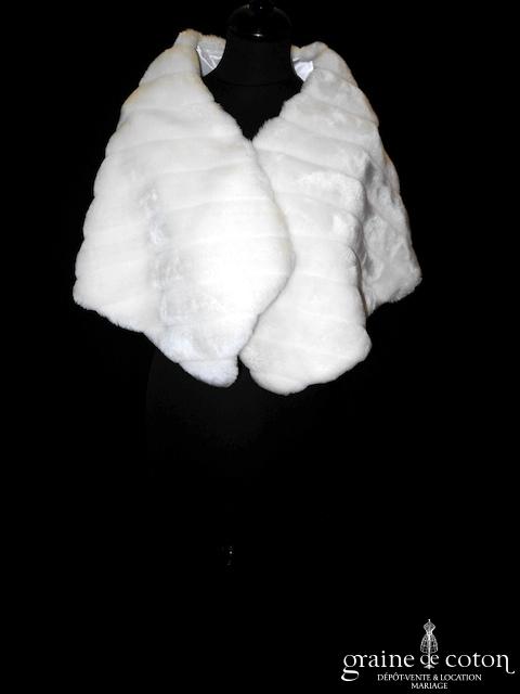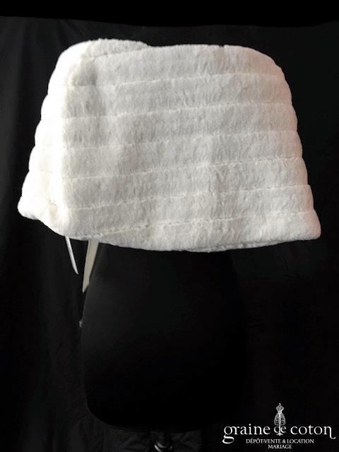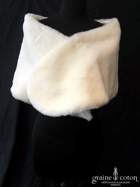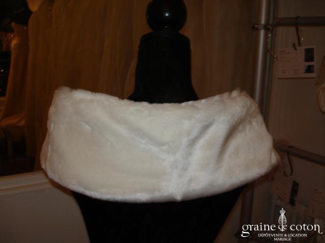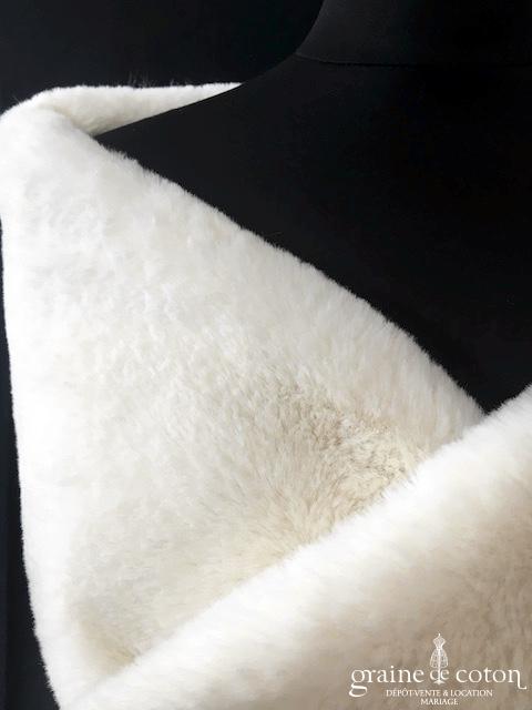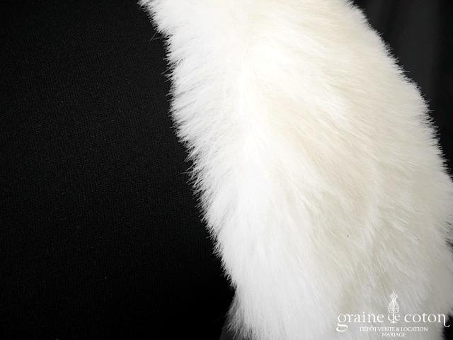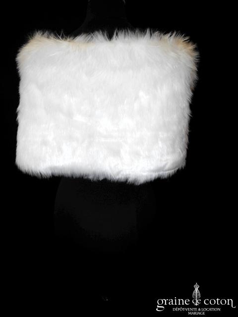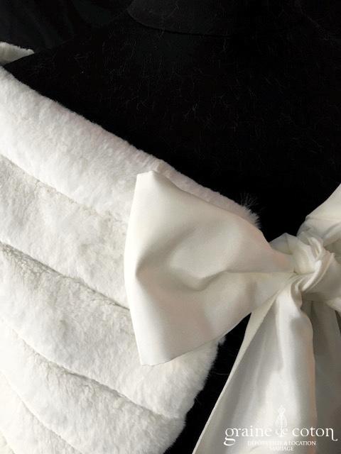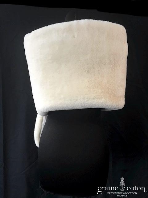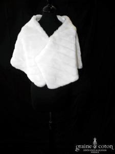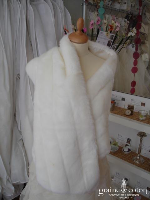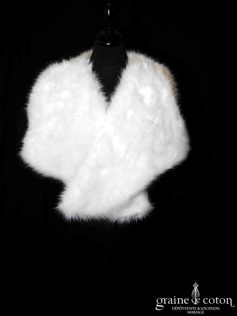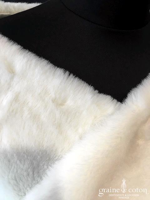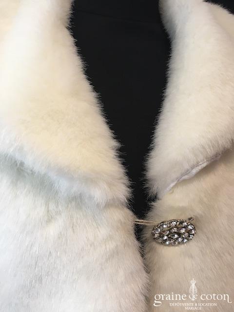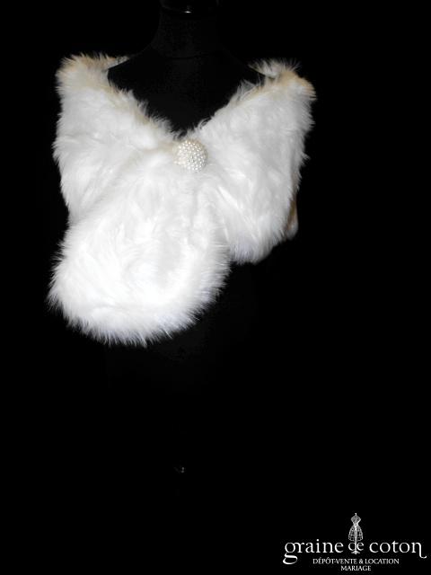 Étole en fausse fourrure blanche, à fermer avec une broche ou bien à laisser telle quelle. Idéale pour les mariages hivernaux ou de mi saison.