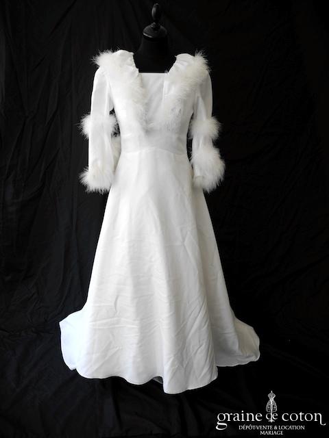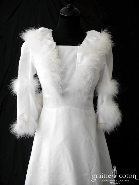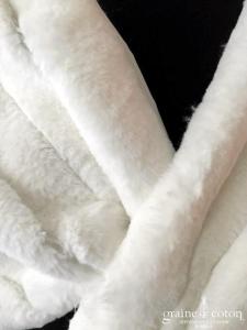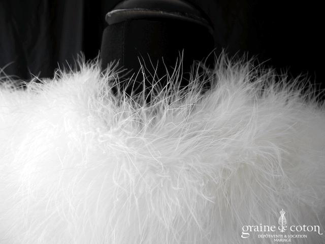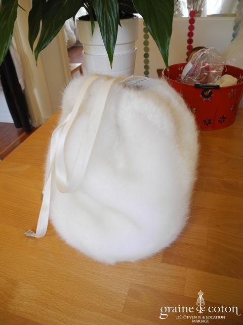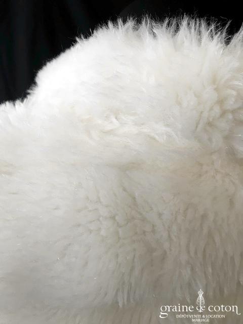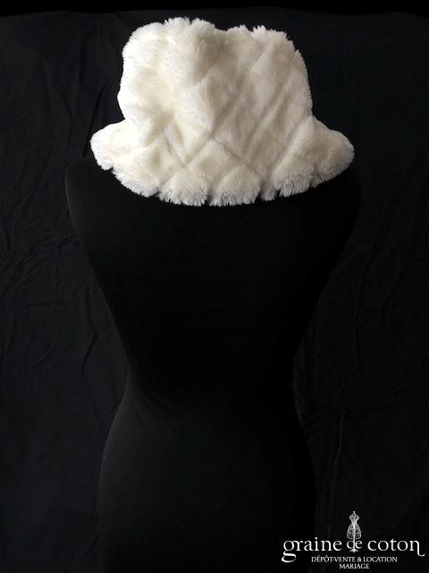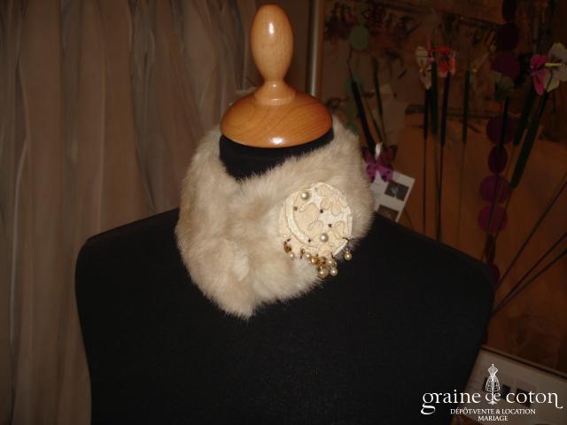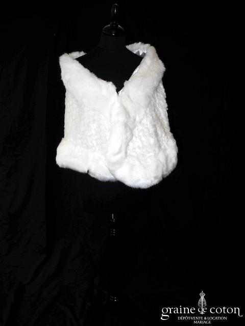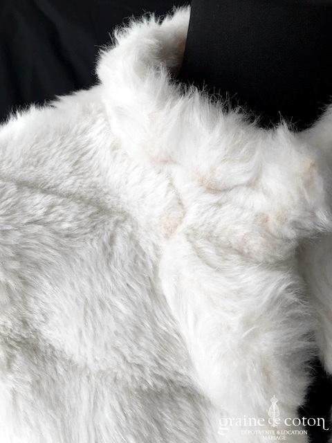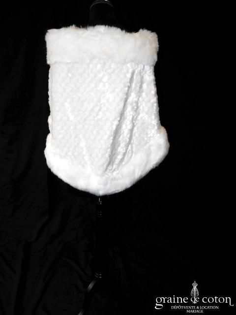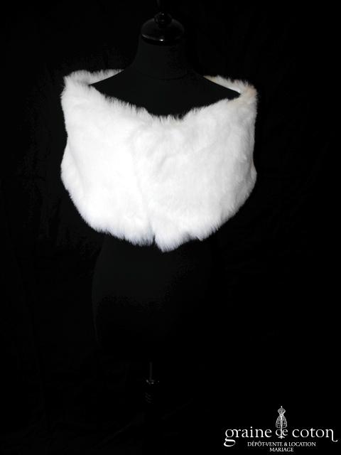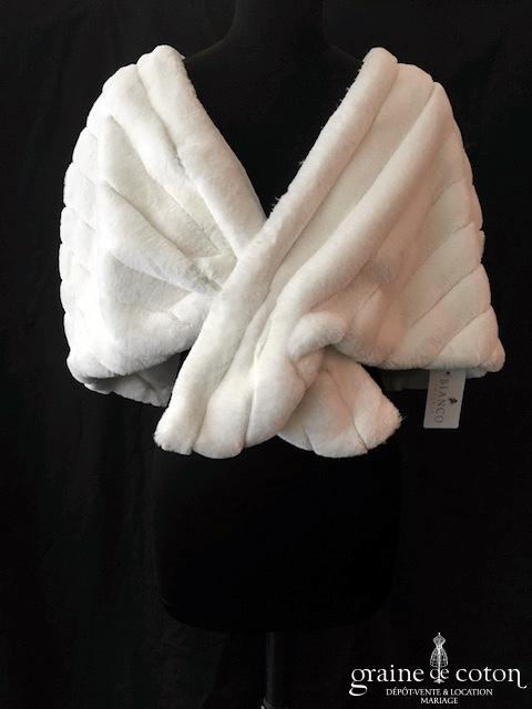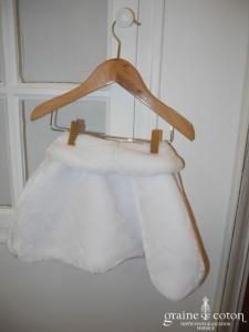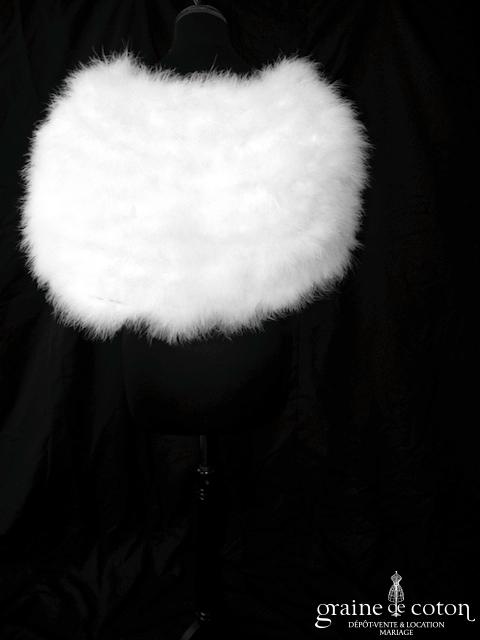 Étole en fausse fourrure blanche, à fermer avec une broche ou bien à laisser telle quelle. Idéale pour les mariages hivernaux ou de mi saison.