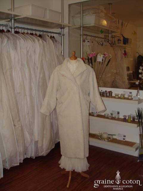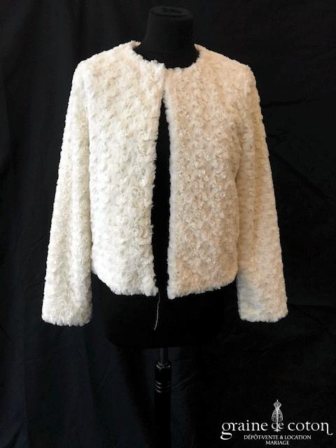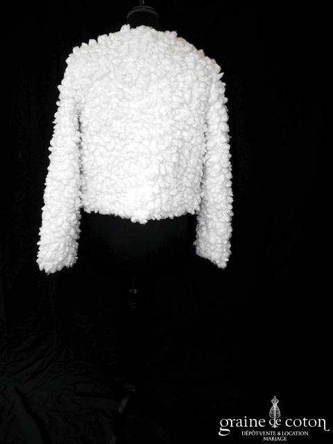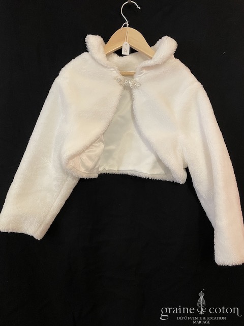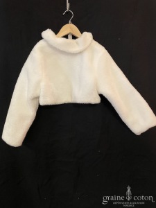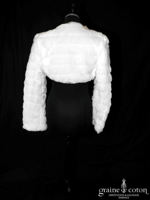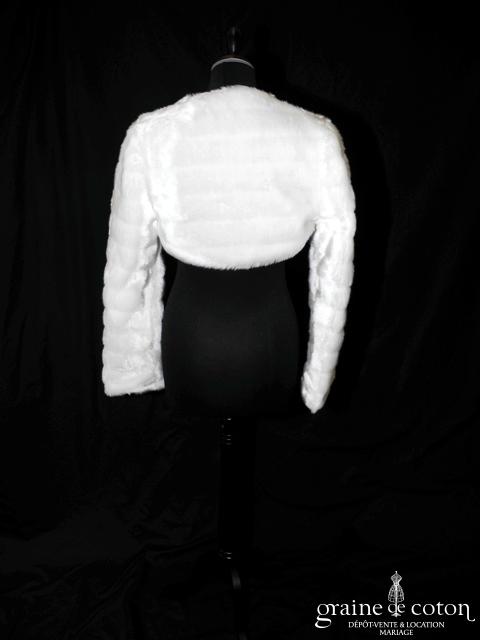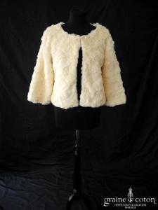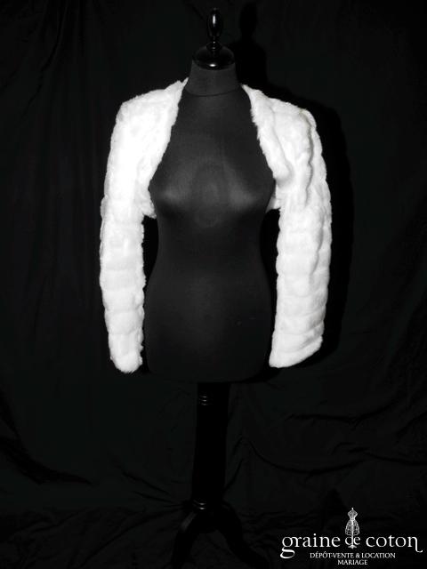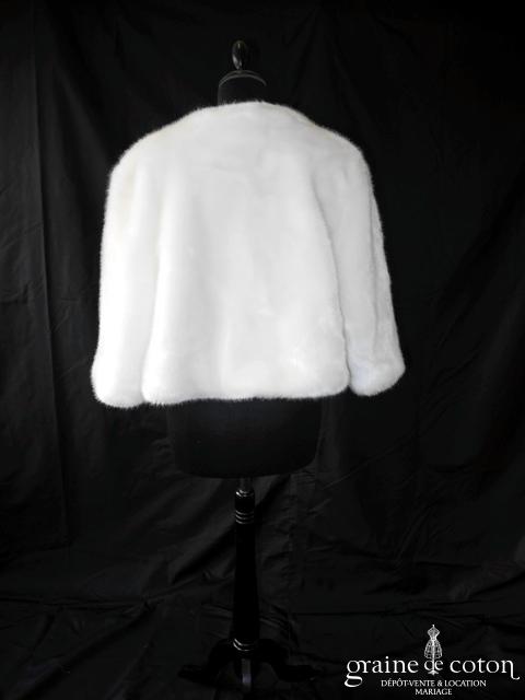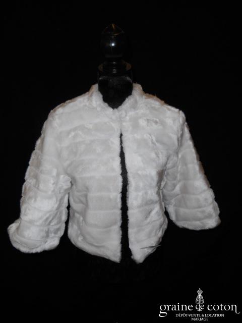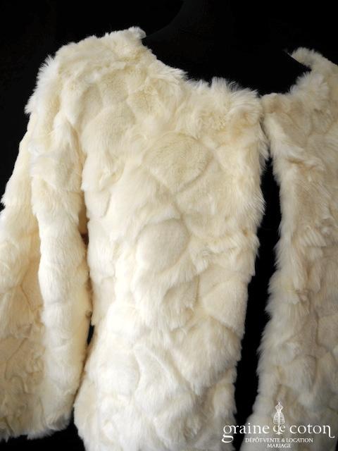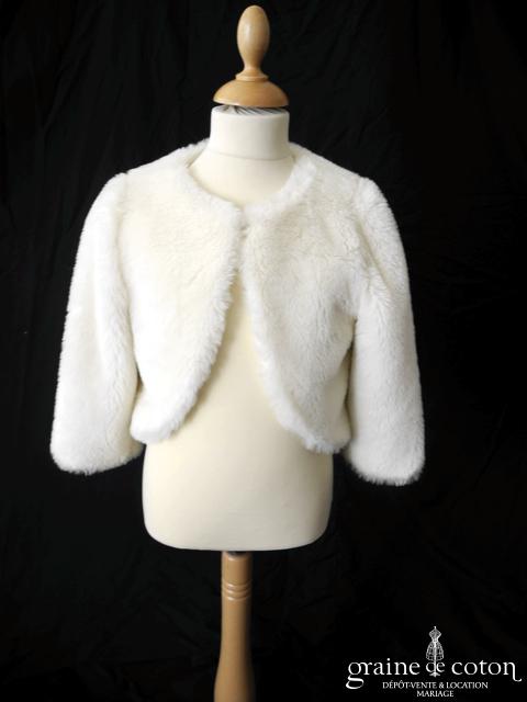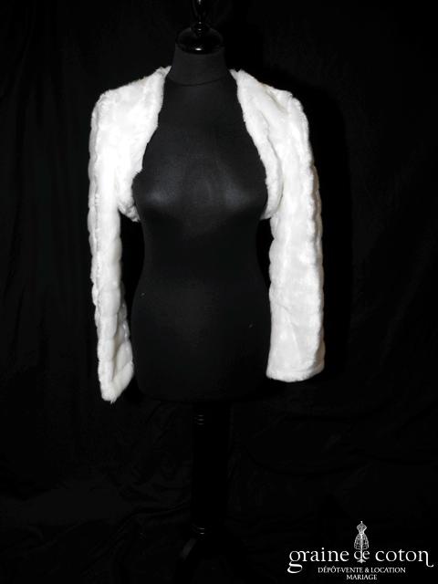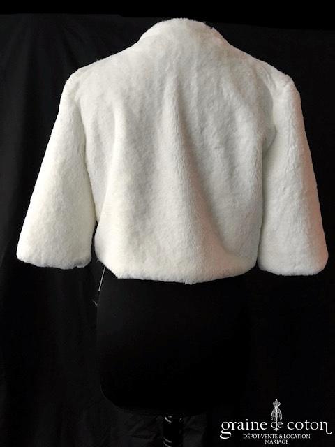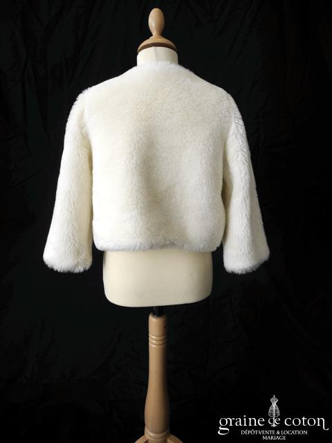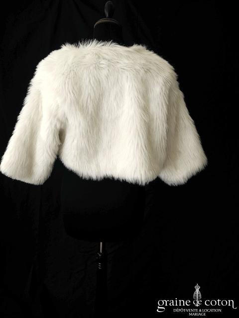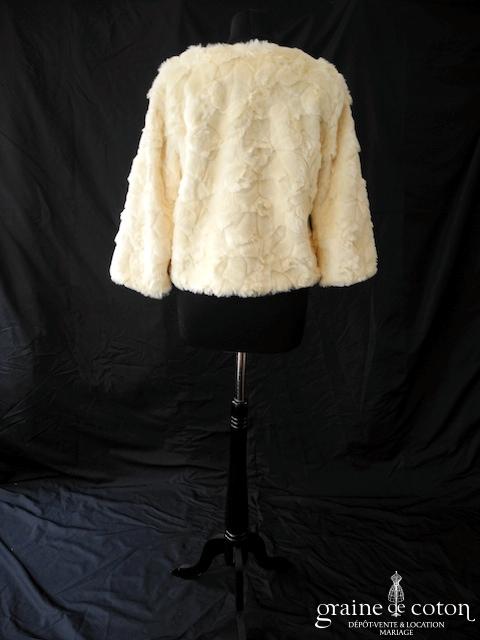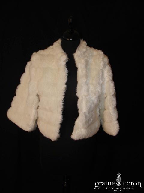 Manteau court en fausse fourrure ivoire clair, manches 3/4. Mignon ;o)