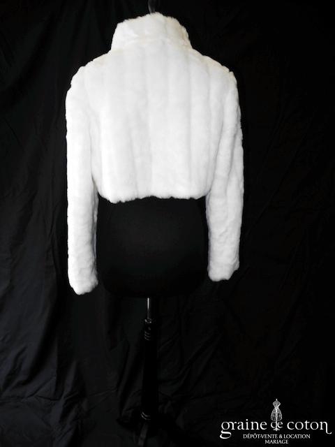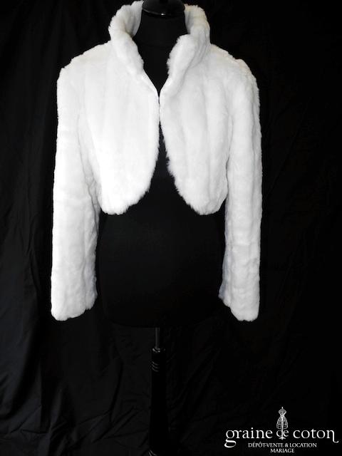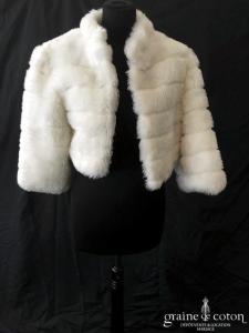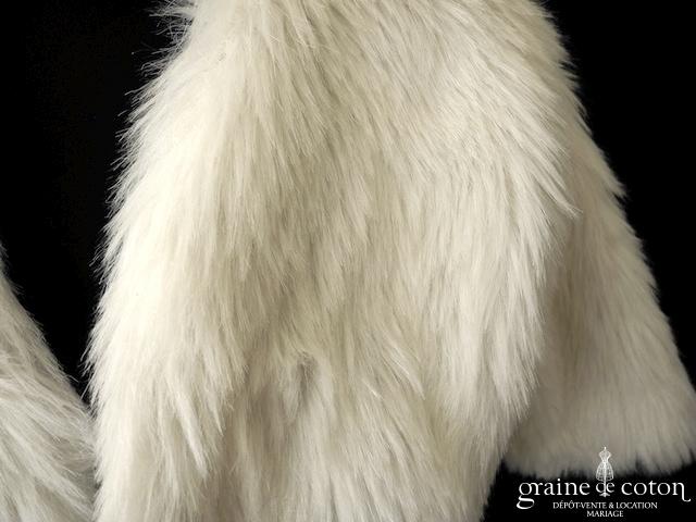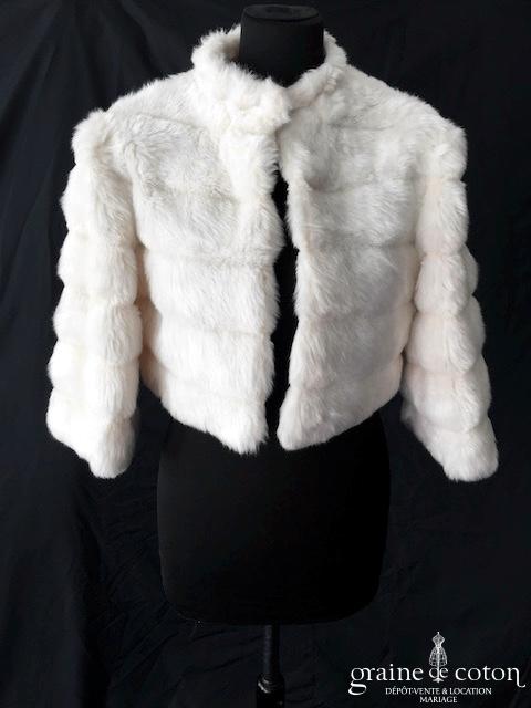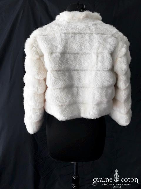 Manteau court en fausse fourrure ivoire clair manches 3/4