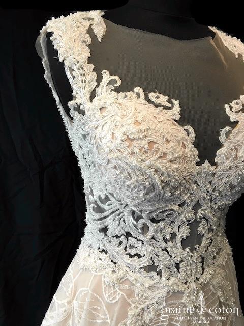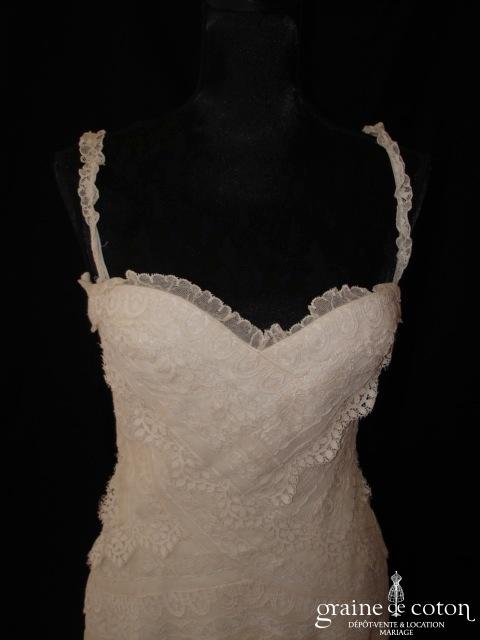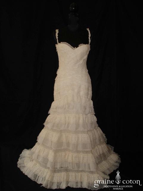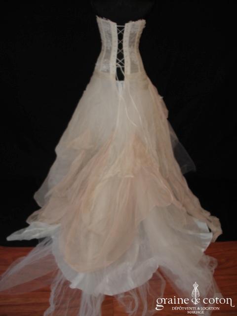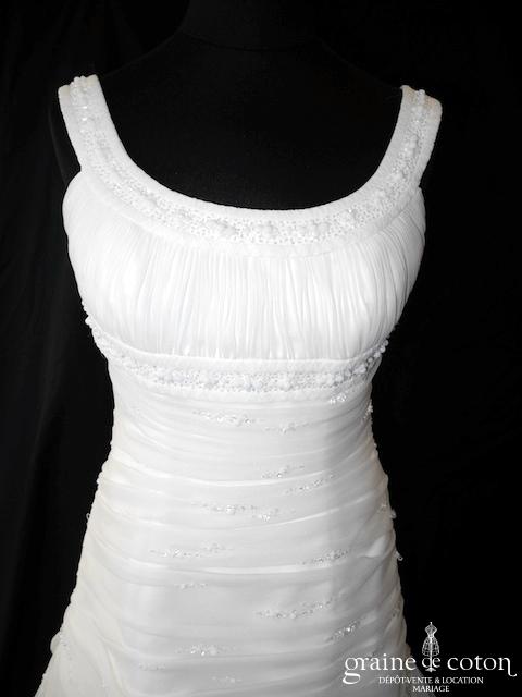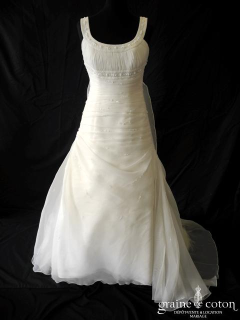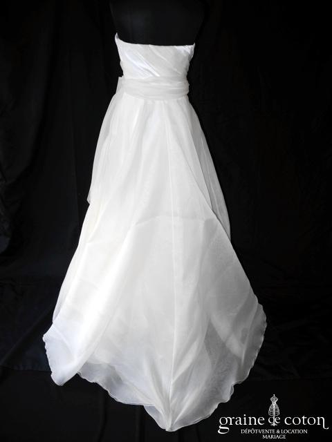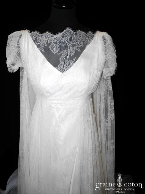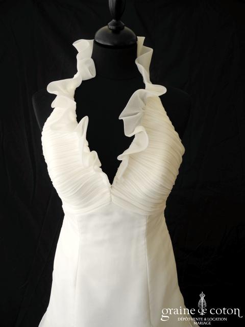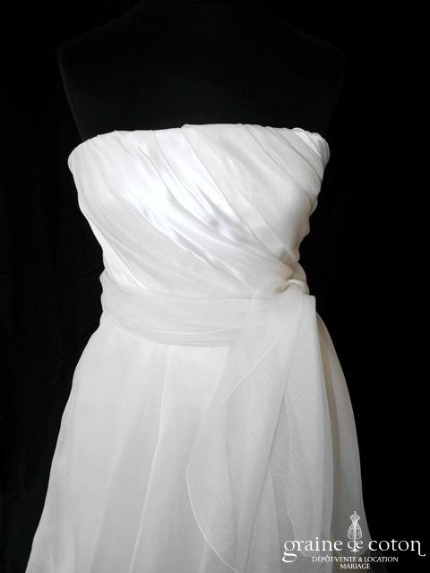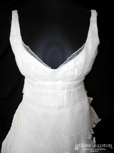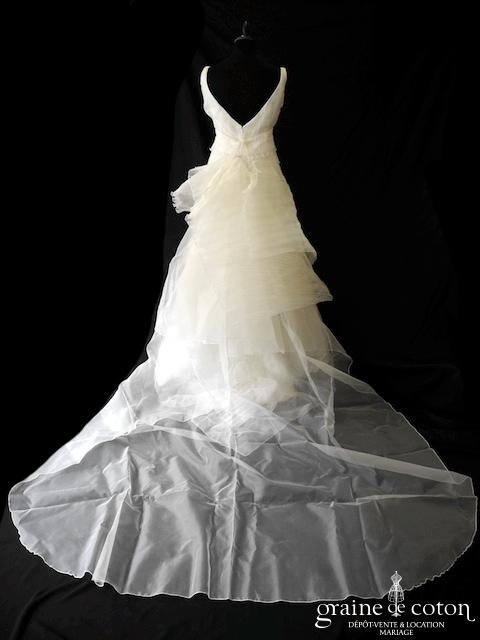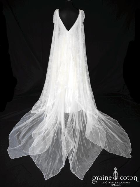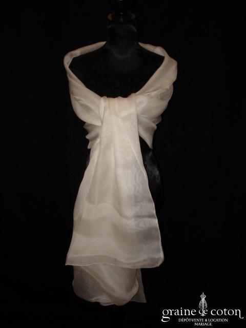 Étole ivoire en gaze de soie mélangée. Dimensions : 70 * 180 cm.