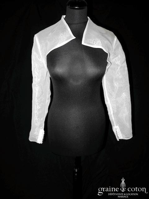 Boléro en organza ivoire clair avec manches longues boutonnées.