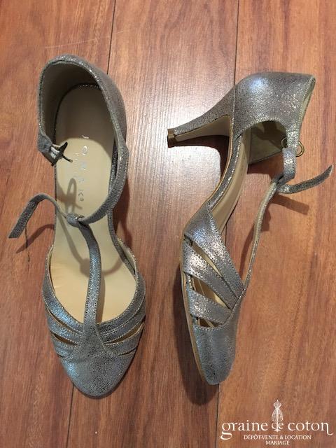 Salomés en nubuck nude rosé. Talon de 7 cm.