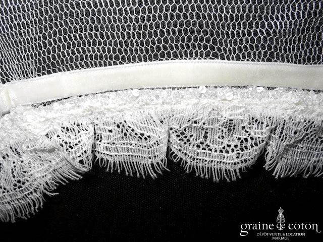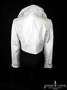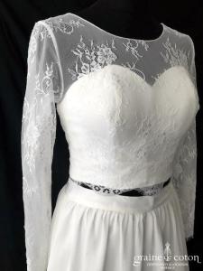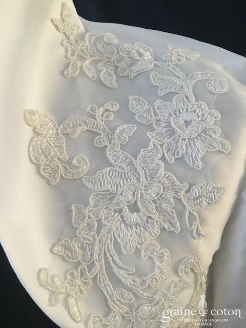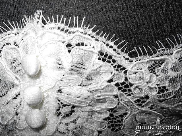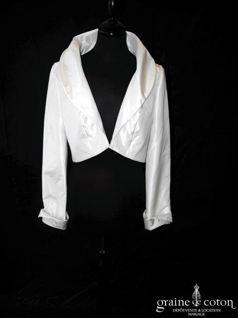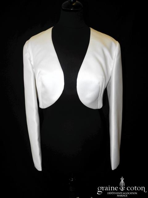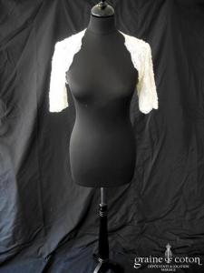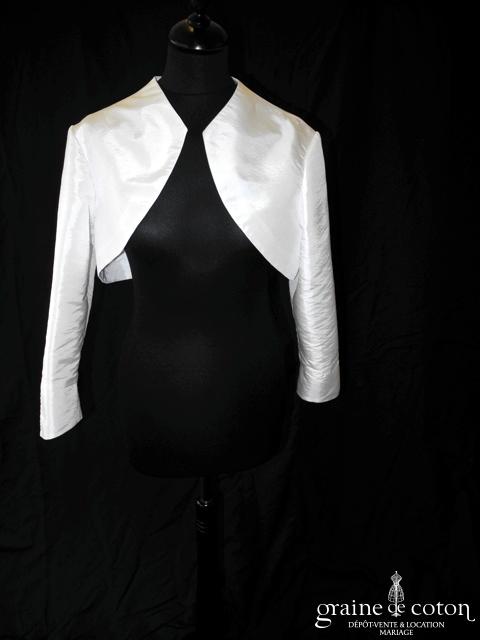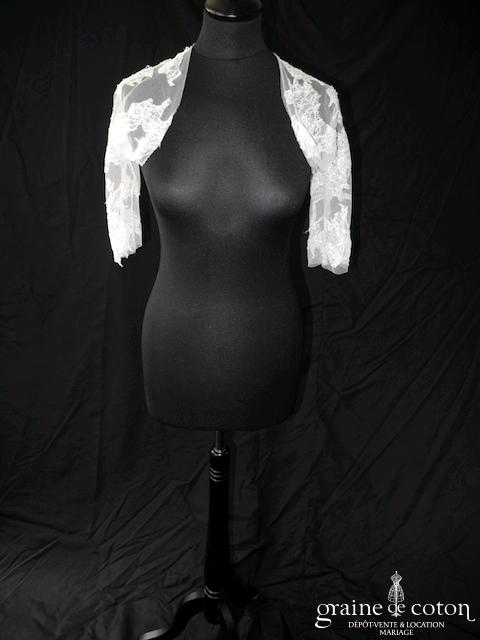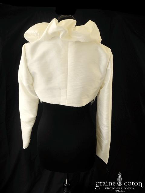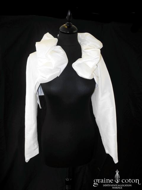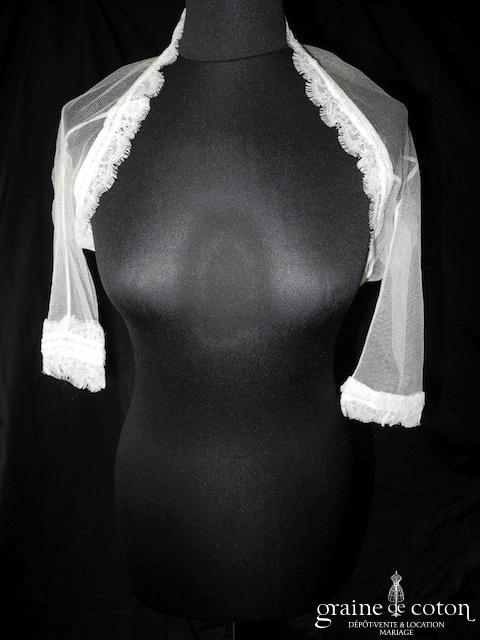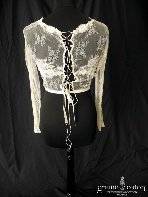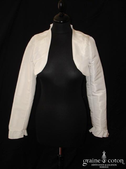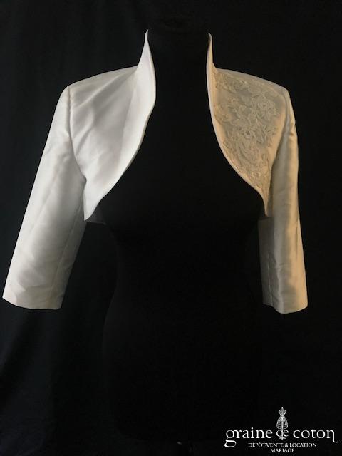 Boléro en mikado de soie ivoire clair avec dentelle et manches longues
