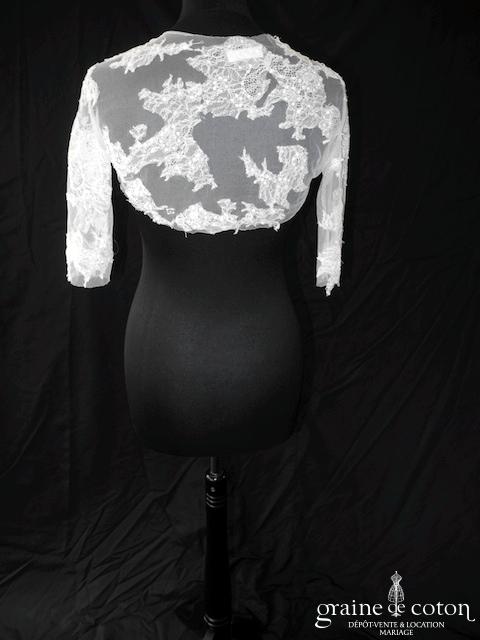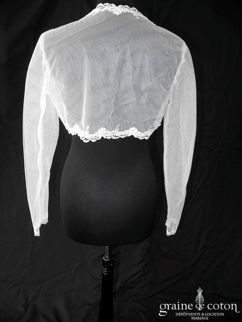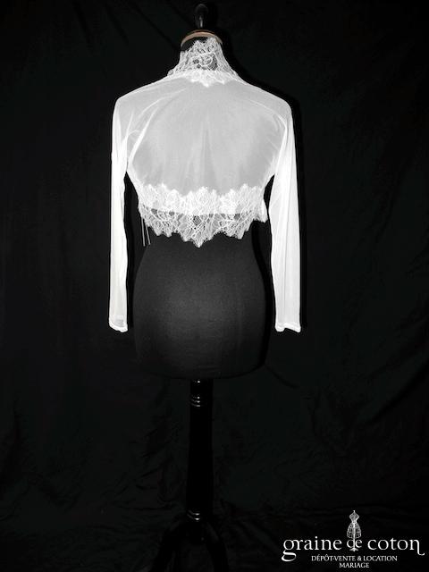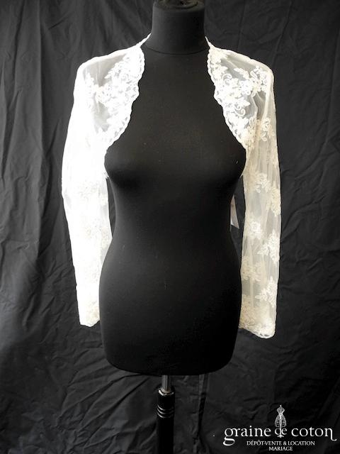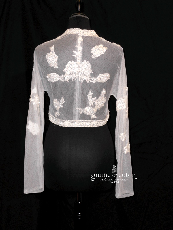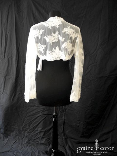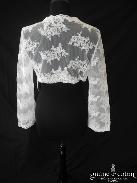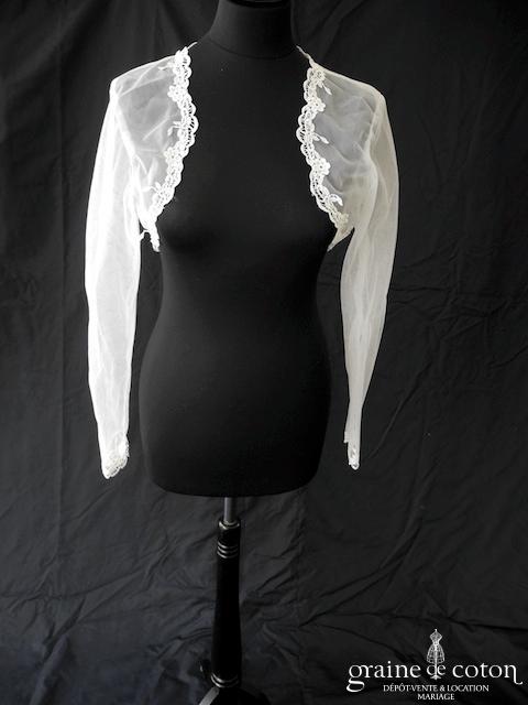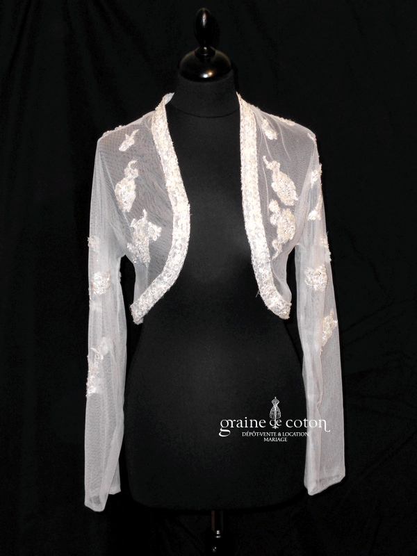 Boléro à manches longues à fermer dans le dos en tulle et broderies ivoire