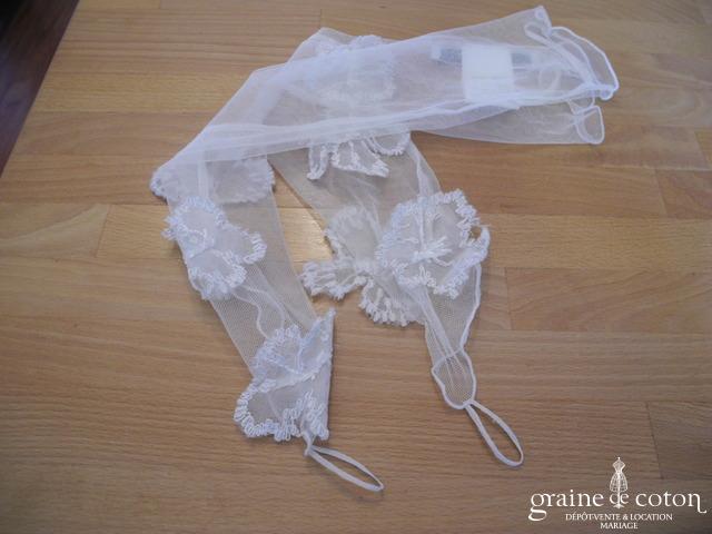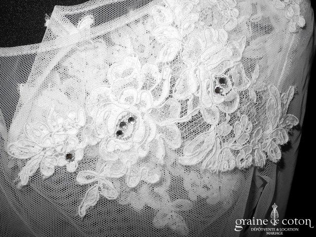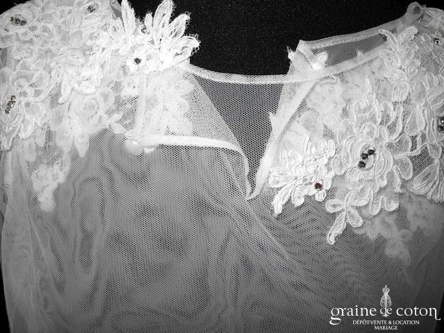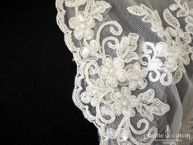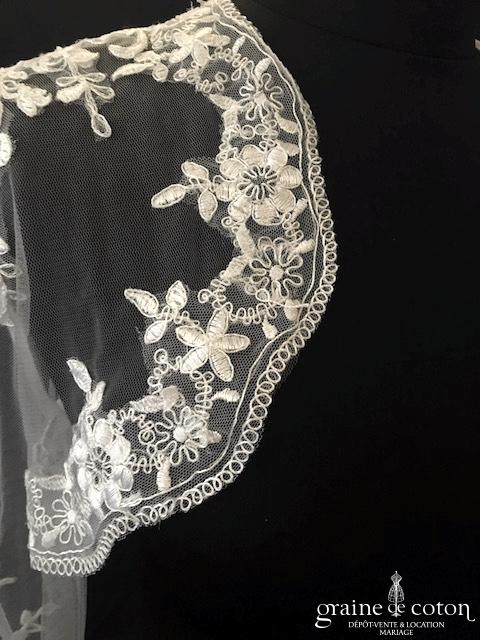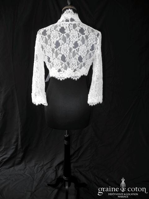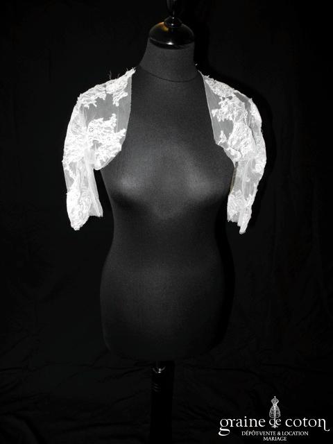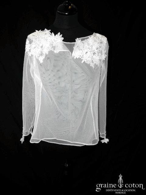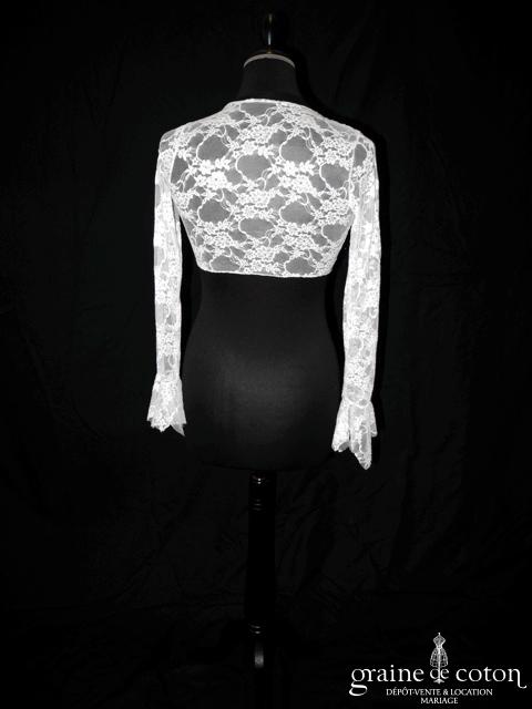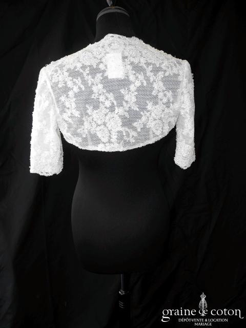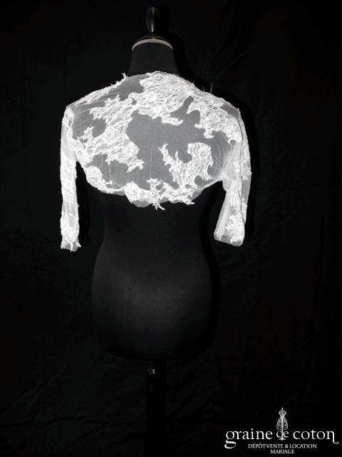 Boléro à manches longues à fermer dans le dos en tulle et broderies ivoire