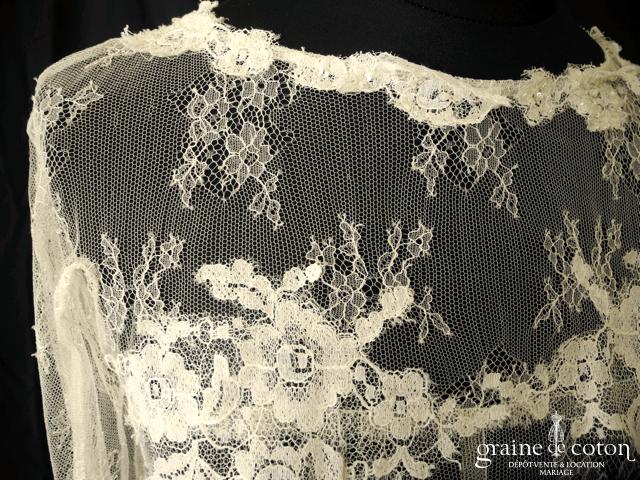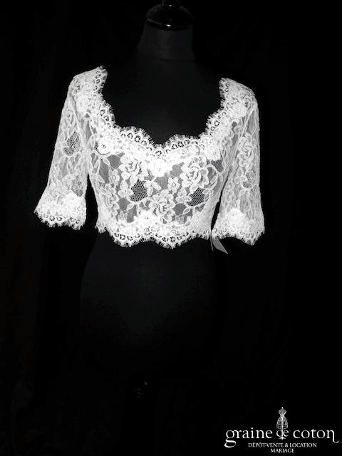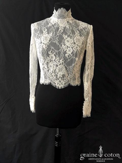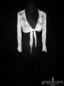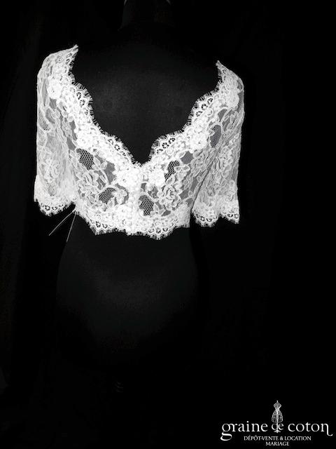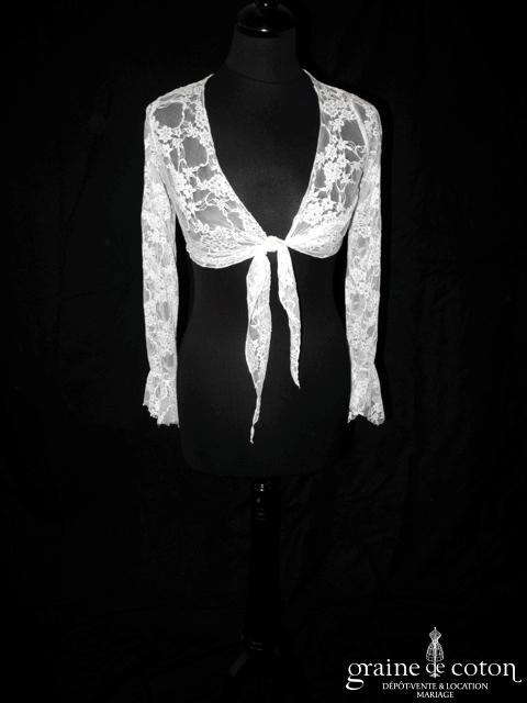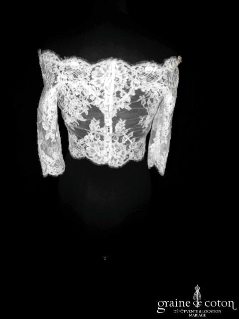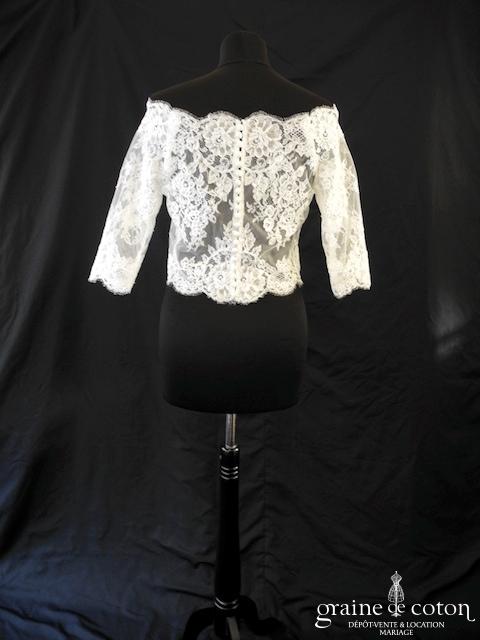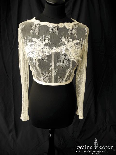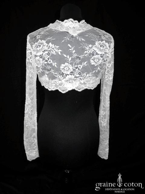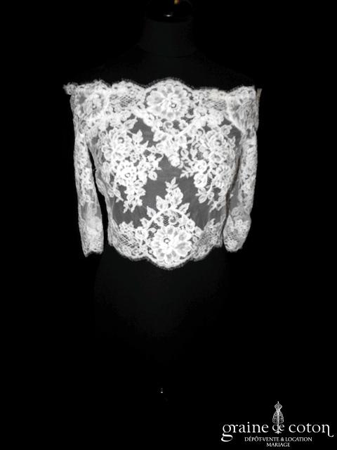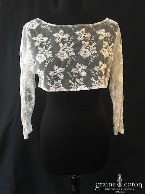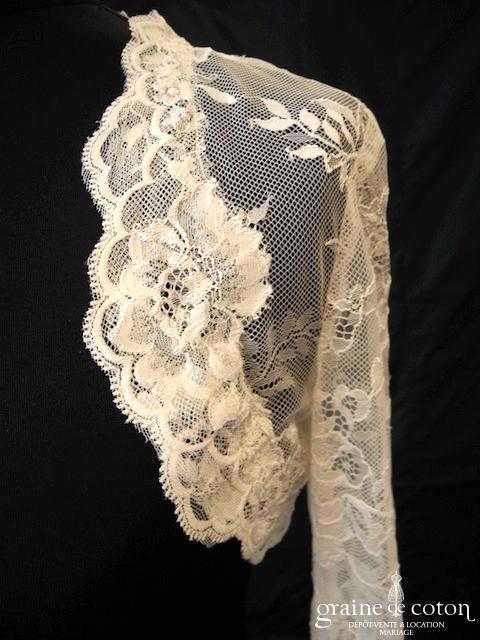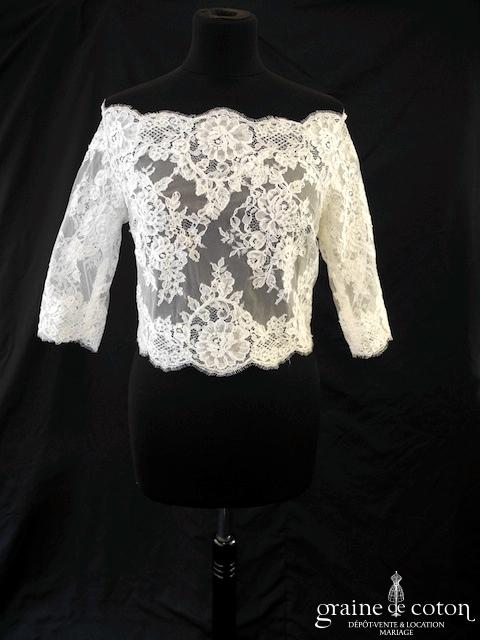 Boléro en fine dentelle de Chantilly ivoire à manches longues et encolure bateau