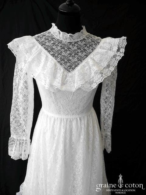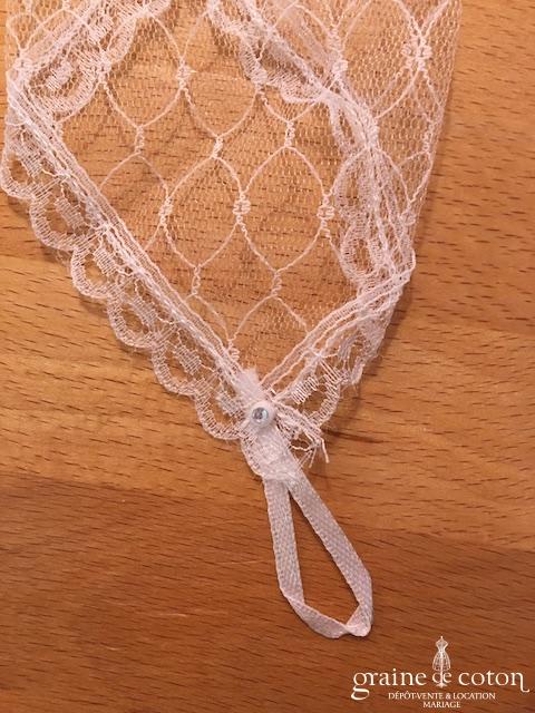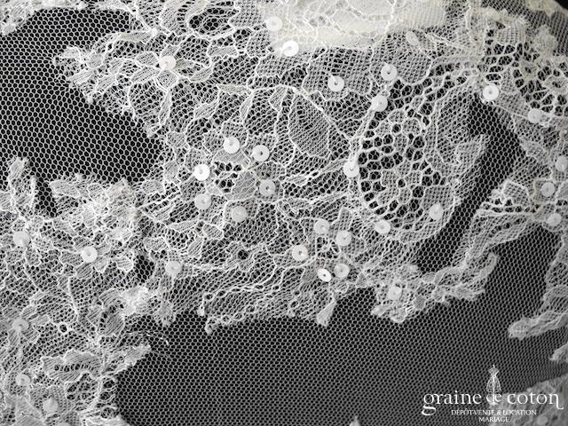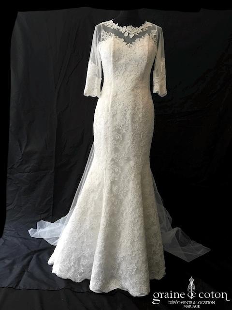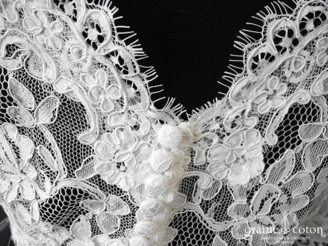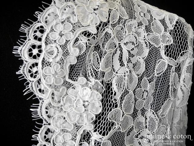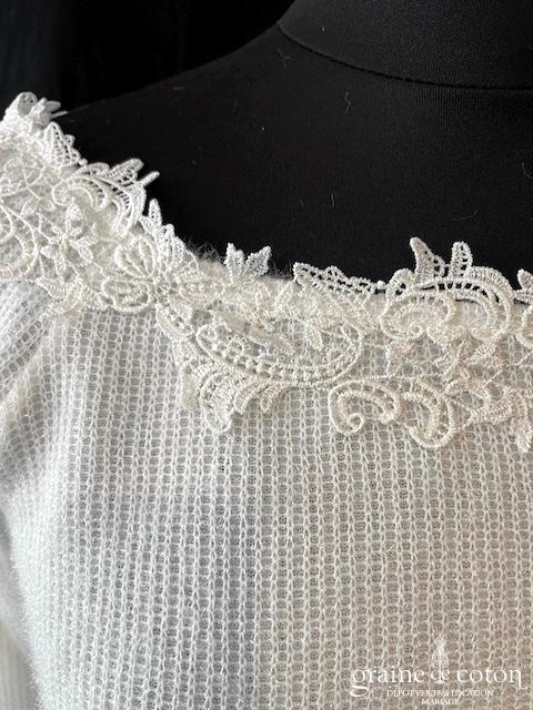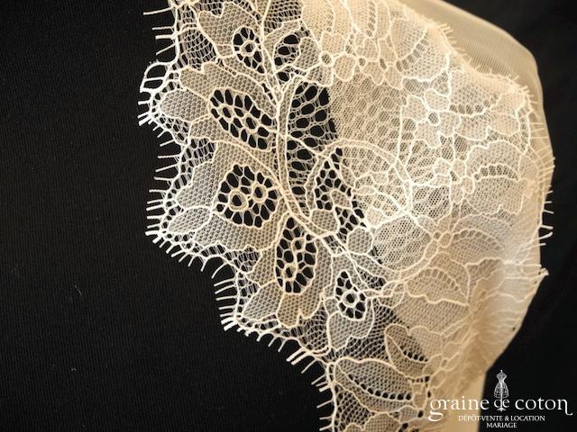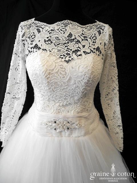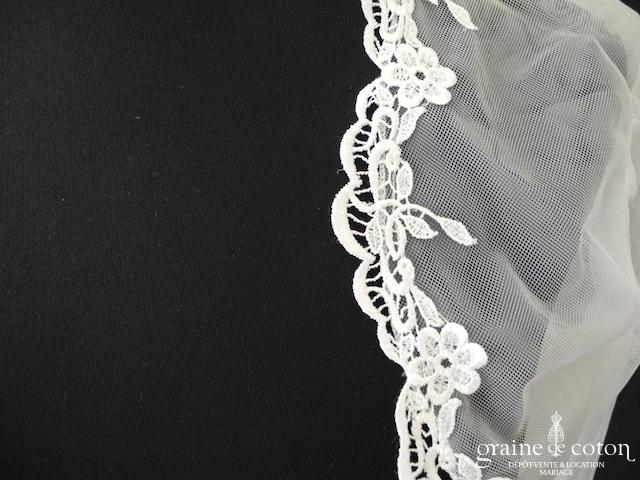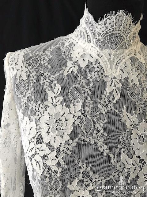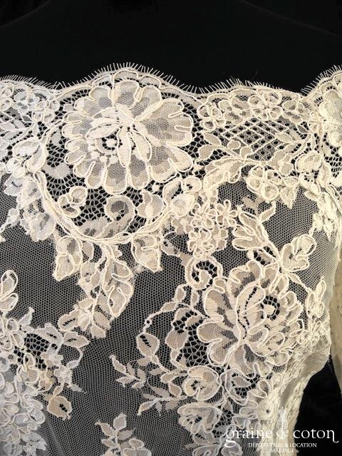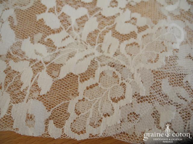 Boléro en fine dentelle de Chantilly ivoire à manches longues et encolure bateau