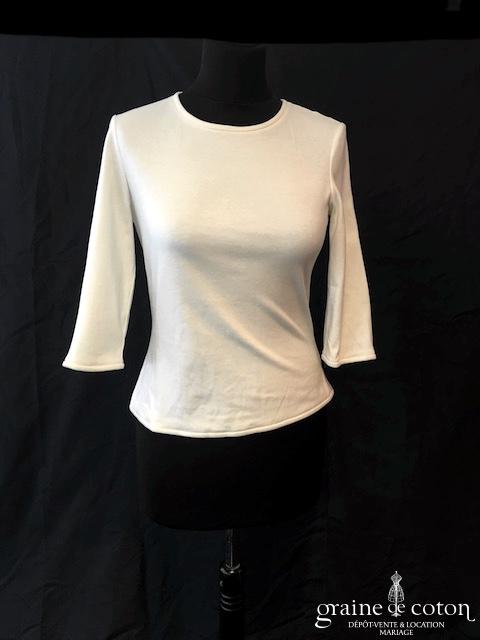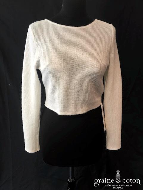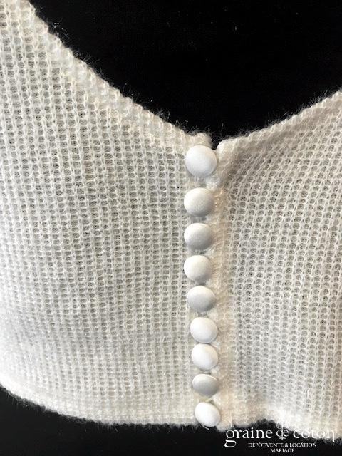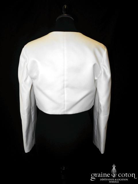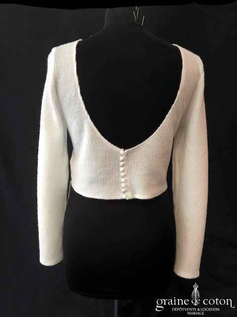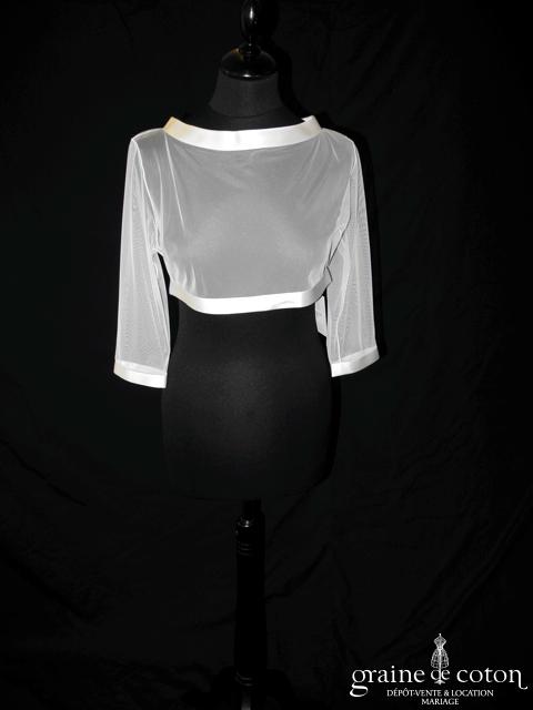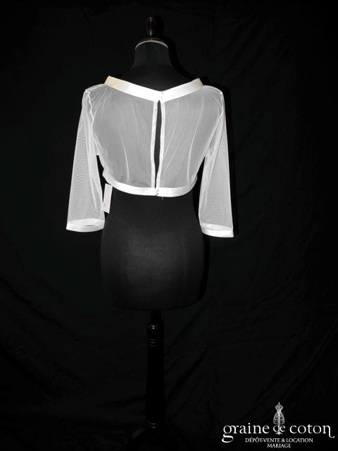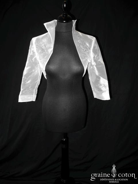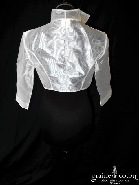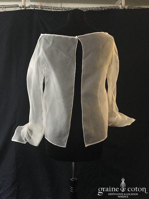 Boléro en organza de soie ivoire clair manches longues à porter ouvert sur l’arrière