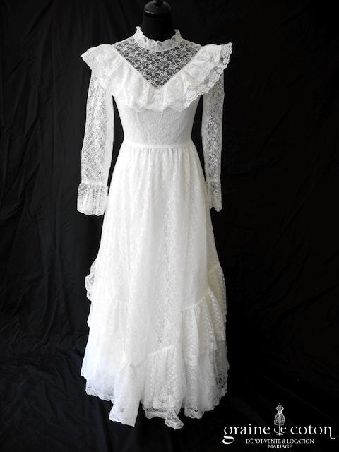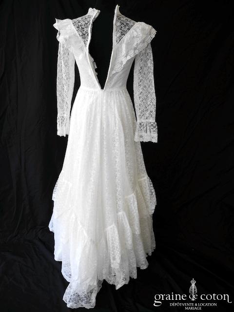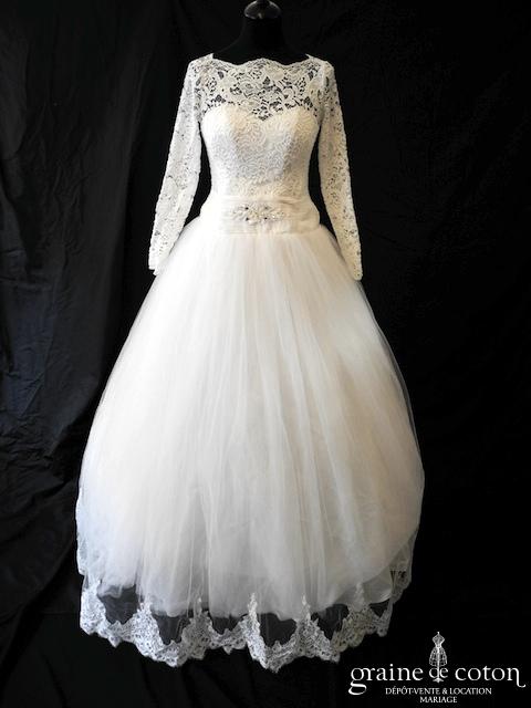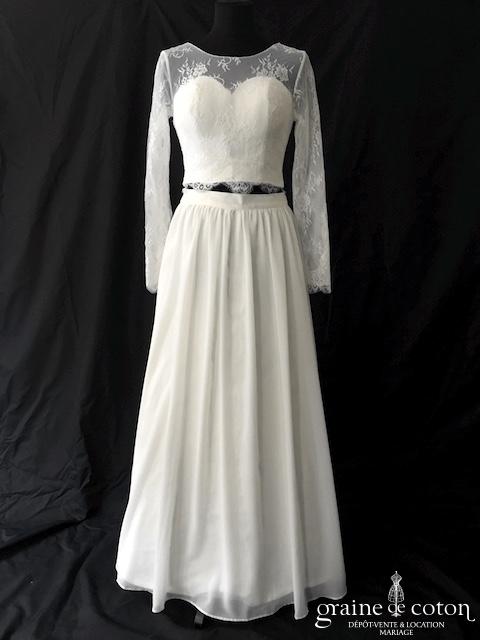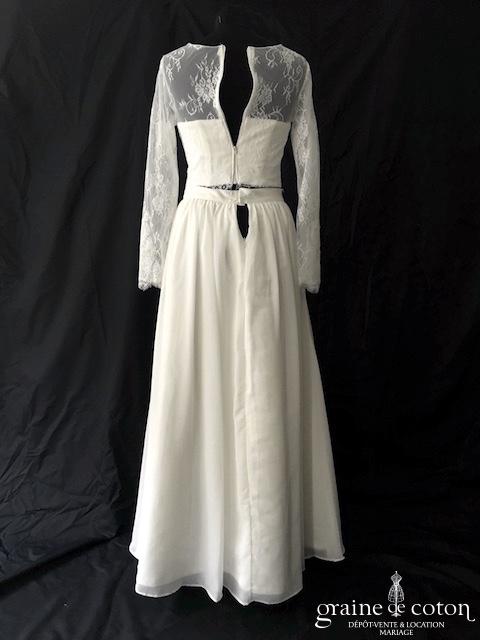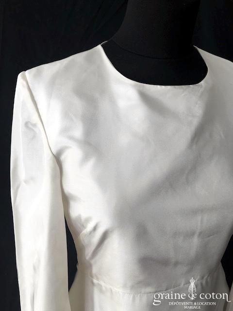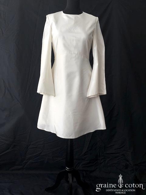 Robe courte en taffetas ivoire à manches longues évasées. Idéale en 2e tenue civile ou pour la soirée.