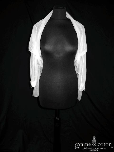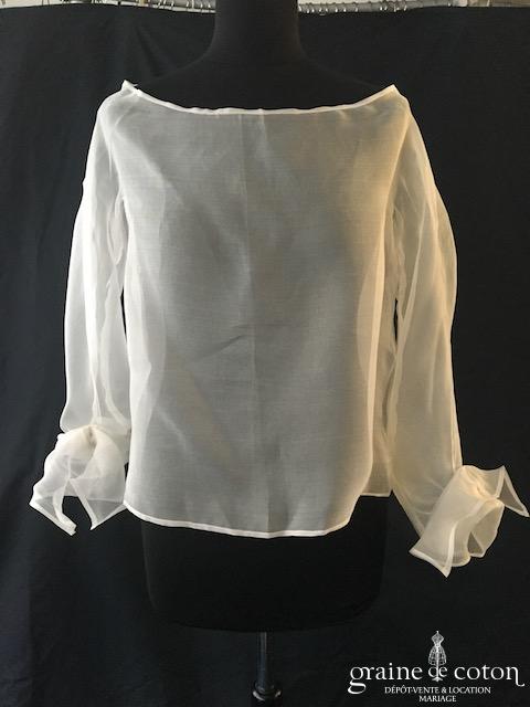 Boléro en organza de soie ivoire clair manches longues à porter ouvert sur l’arrière. Elégant et raffiné, un accessoire pour transformer votre tenue.