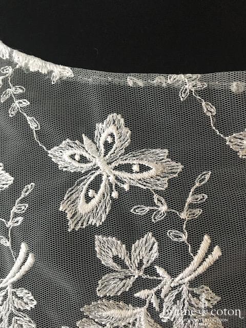 Boléro à manches longues à fermer dans le dos en tulle et broderies ivoire. Transforme une robe bustier sans la dénaturer ;o)