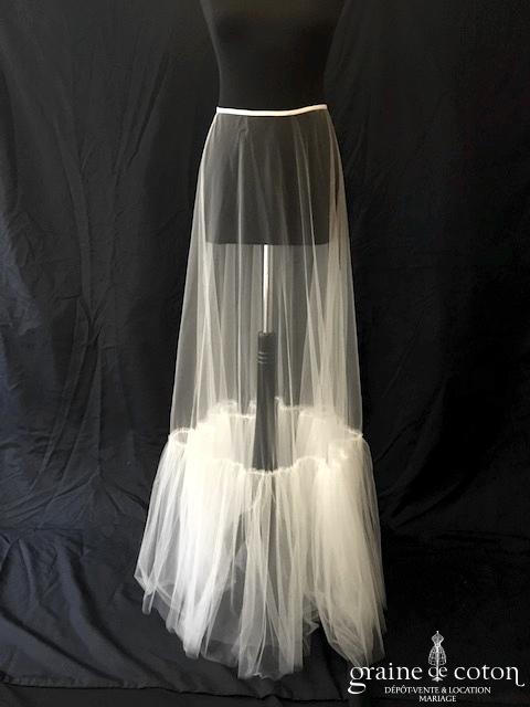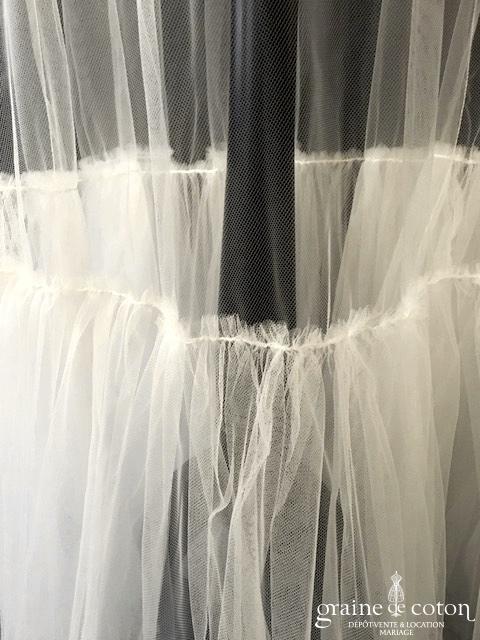 Voile long de 250 cm en mousseline plumetis. Monté sur peigne, sans rabat.