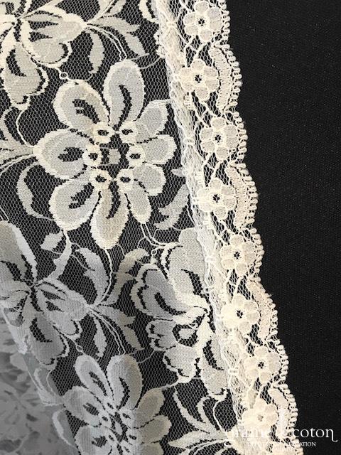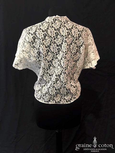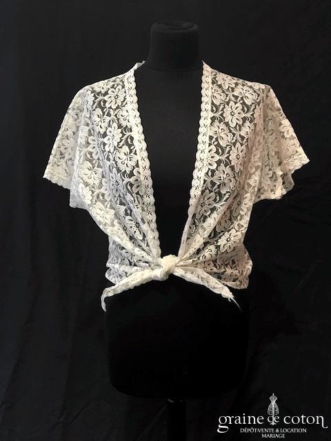 Voile court en tulle ivoir claire bordé de dentelle. Monté sur peigne, avec rabat.