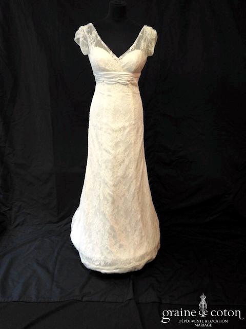 Dépôt de trois nouvelles robes : – le modèle « Melinda » d’Hervé Mariage, fourreau tout en dentelle taille empire, bohème chic. Taille 36-38, référence 5065. – une création d’Harriet de Prag …